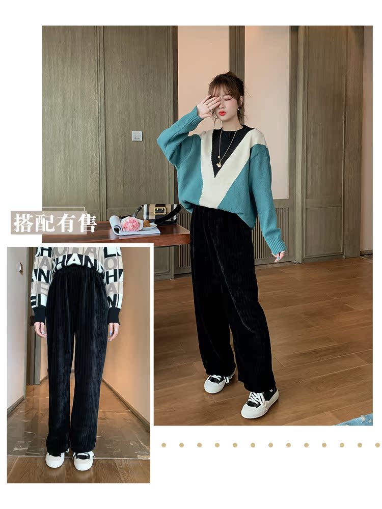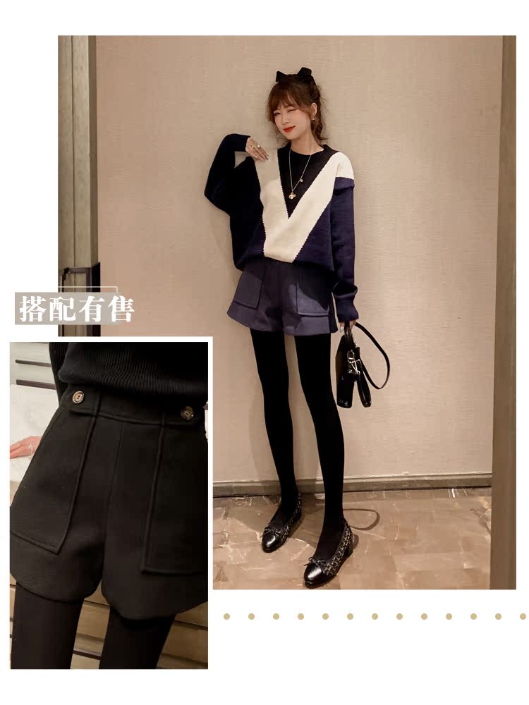 2019女韓版ins慵懶學院風v字拼色毛衣外穿寬松套頭針織衫1入