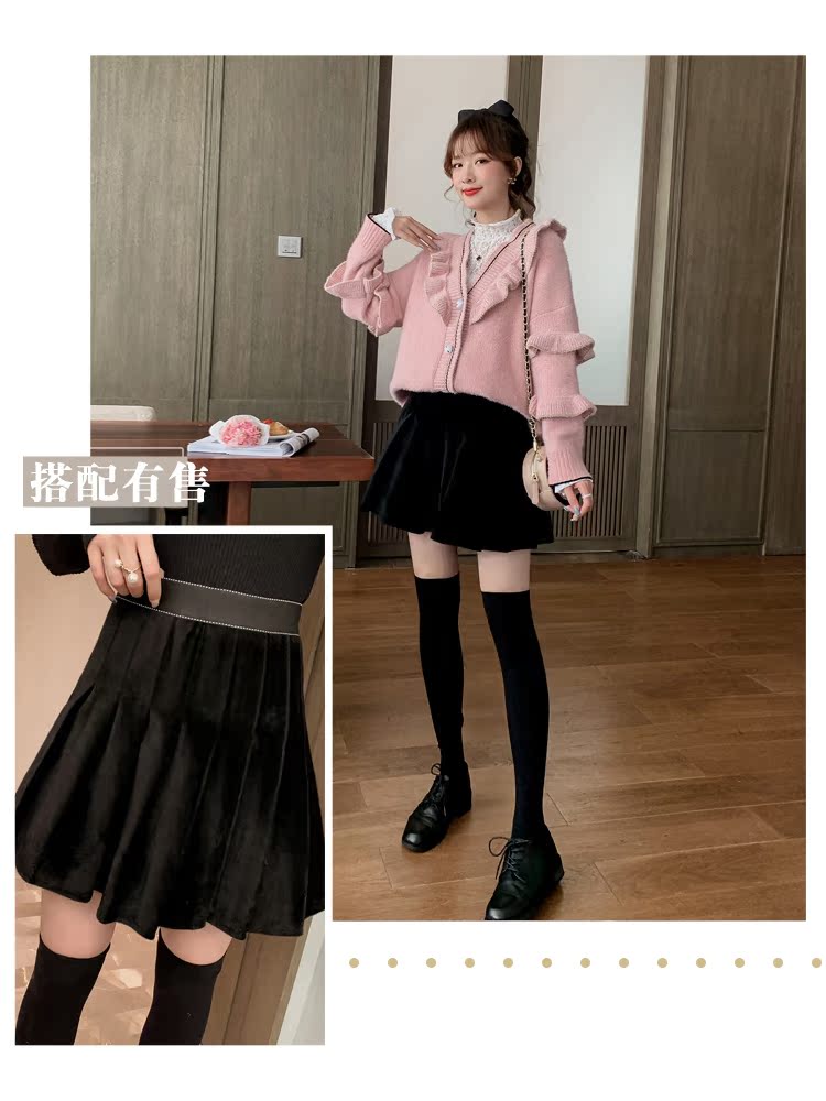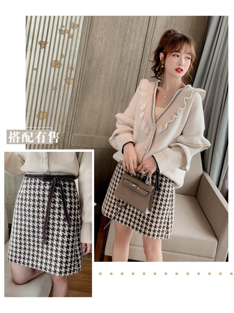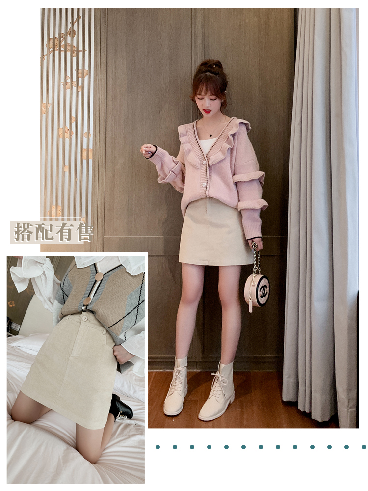 2019洋氣v領甜美荷葉邊針織開衫女韓版寬松百搭外套上衣1入