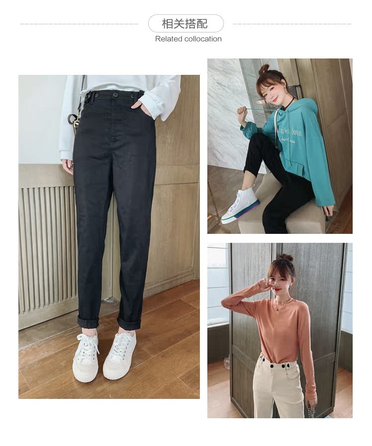 褲子女2019秋季韓版外穿高腰顯瘦小腳褲時尚百搭哈倫蘿卜褲潮1入