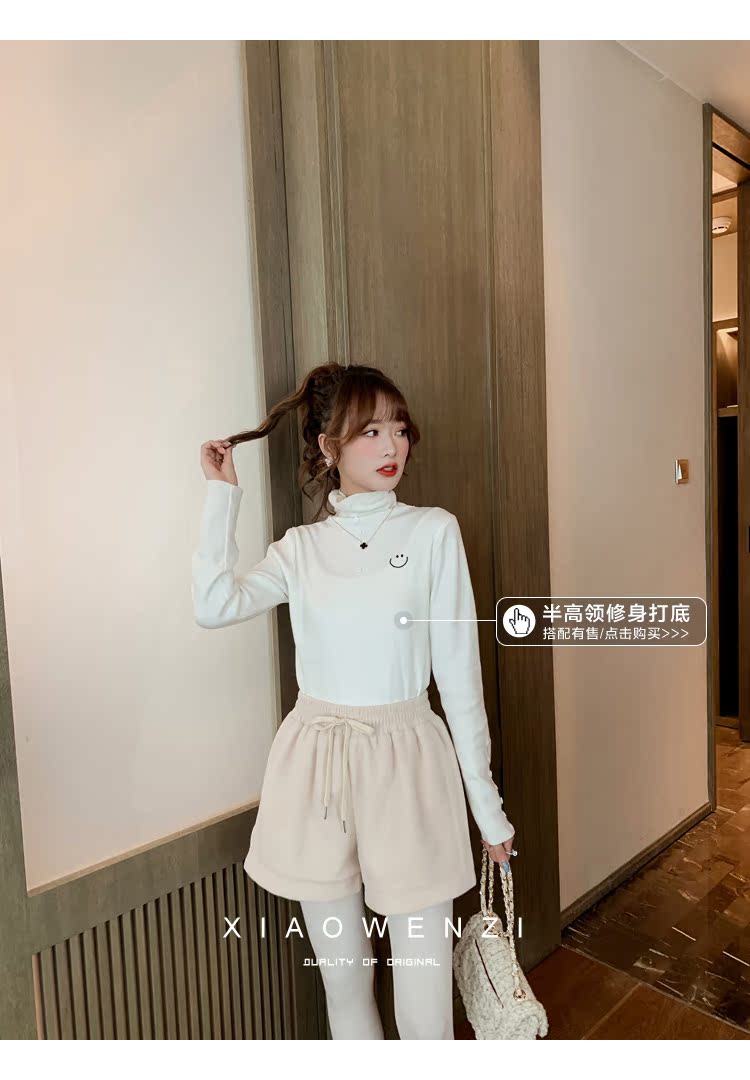韓版高腰仿水貂毛短褲子女寬松2019松緊腰a字闊腿褲靴褲1入