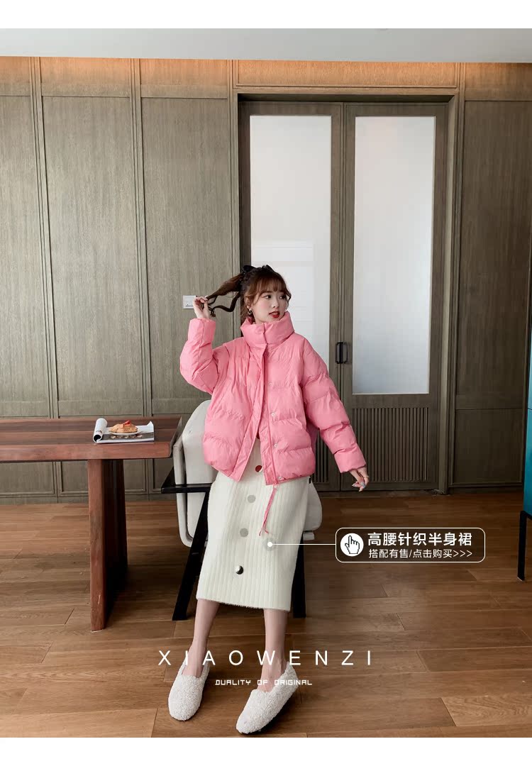 2019冬季韓版寬松立領面包羽絨服女加厚百搭短款棉襖外套上衣1入