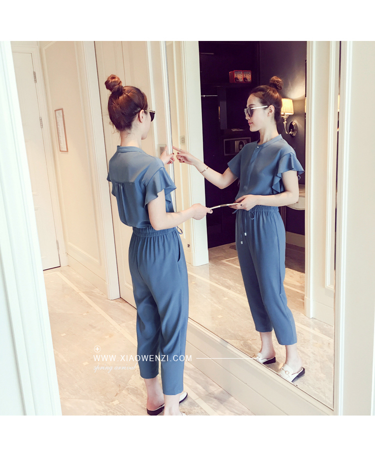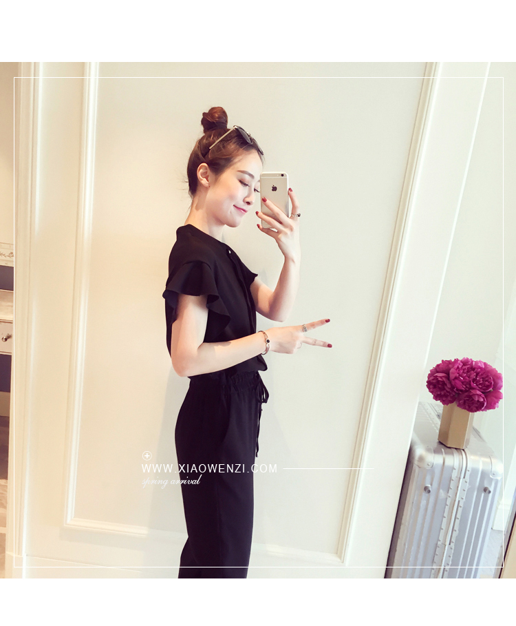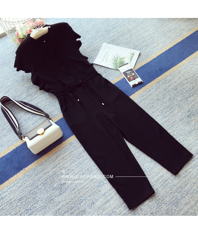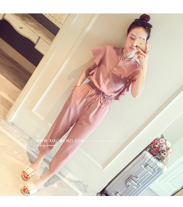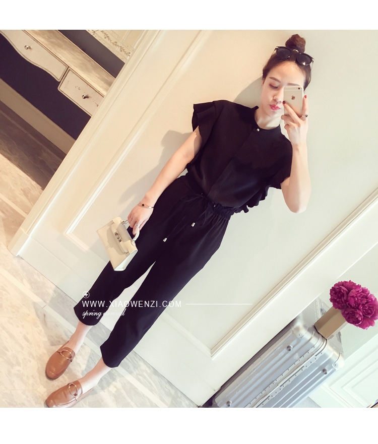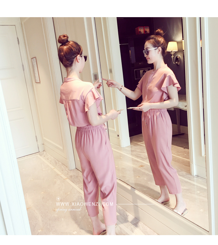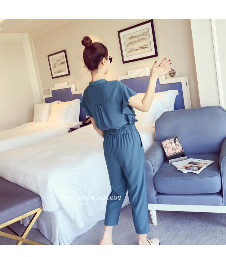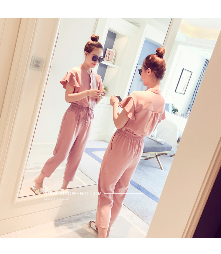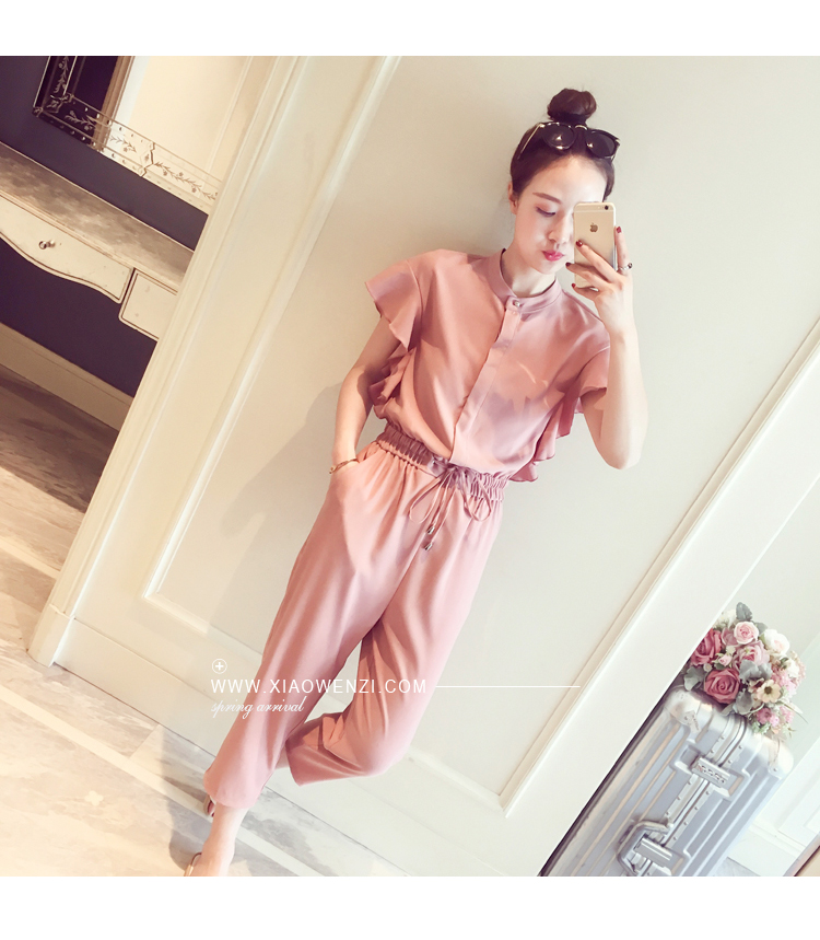 褲子2018夏裝韓版雪紡九分連體褲女連衣褲套裝高腰顯瘦休閑褲1入