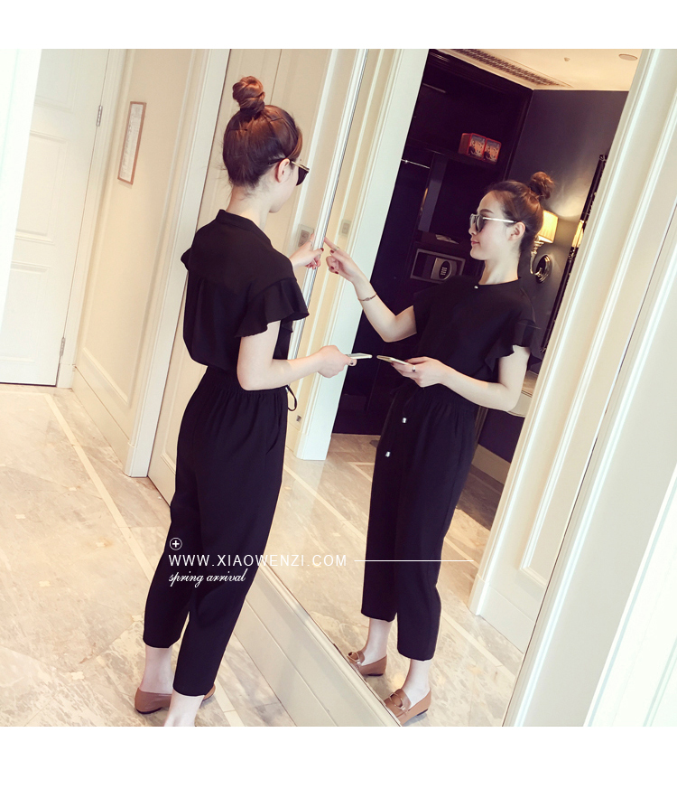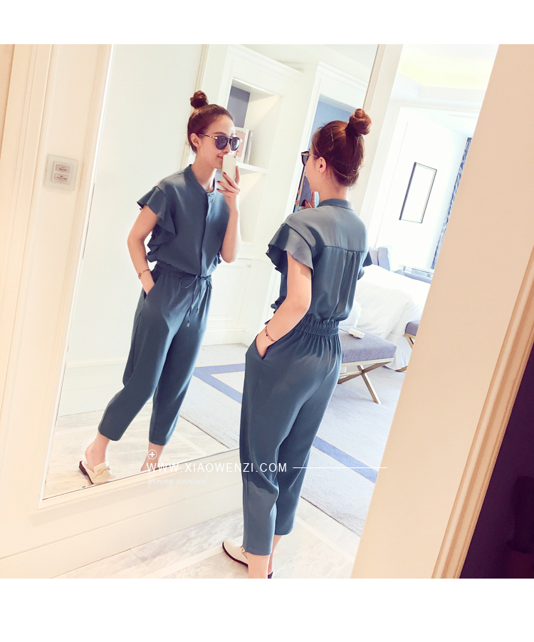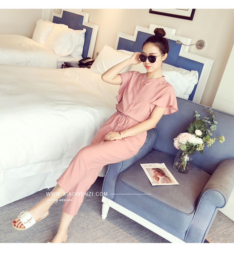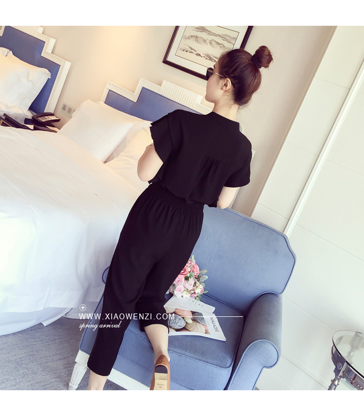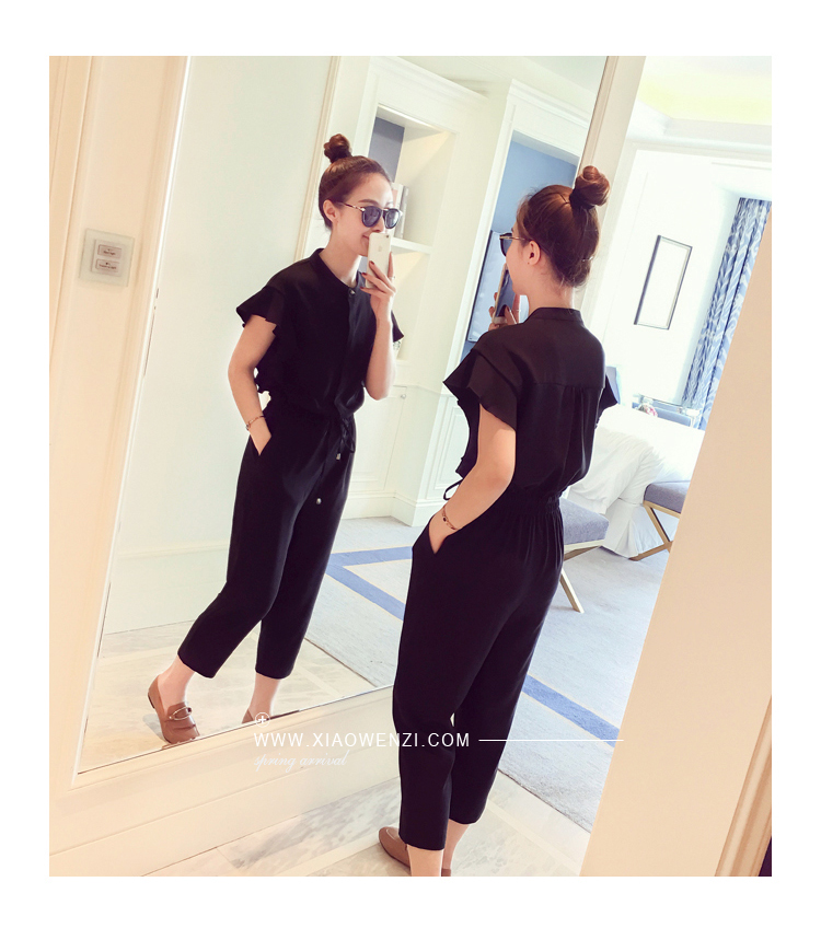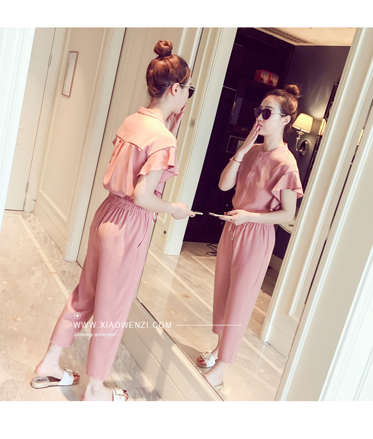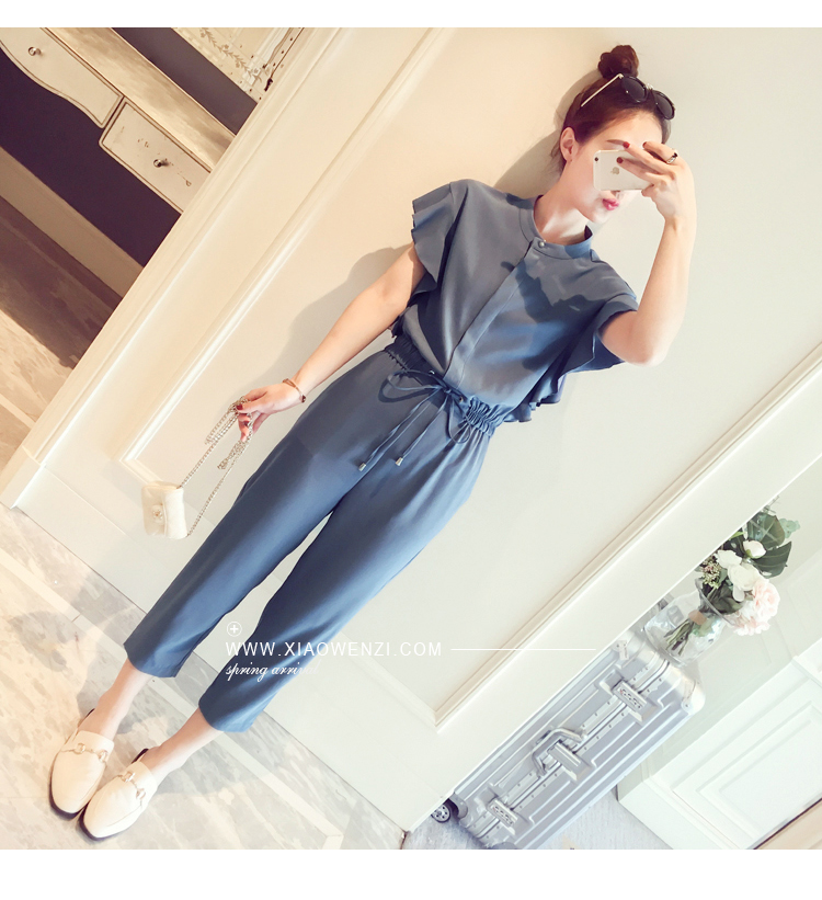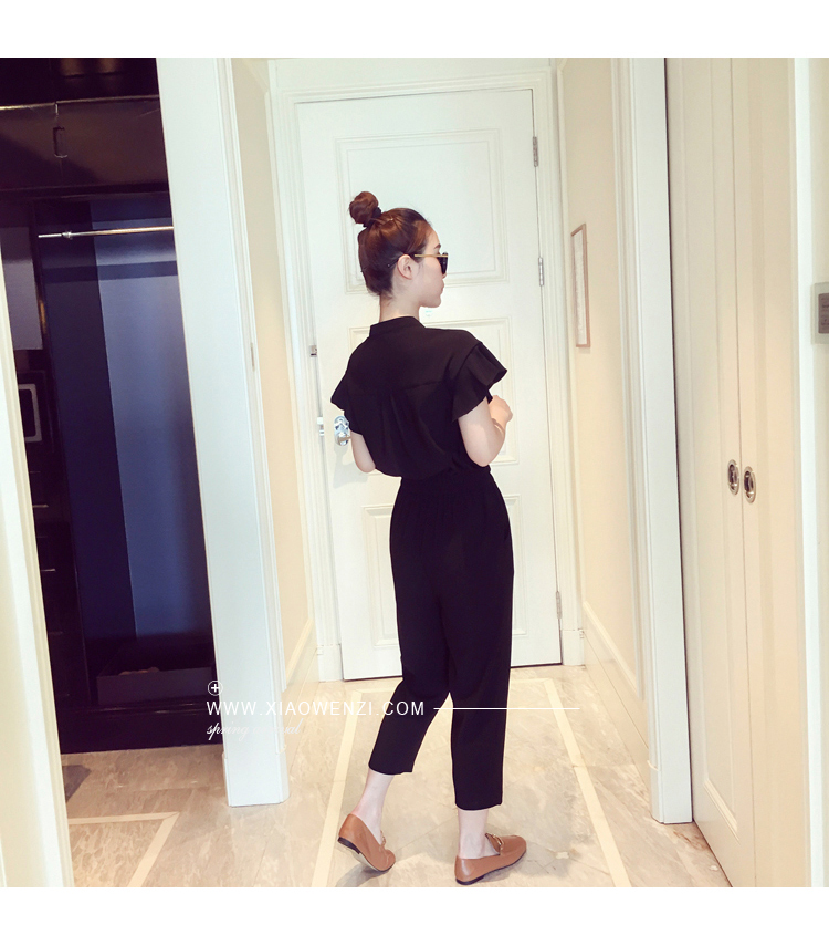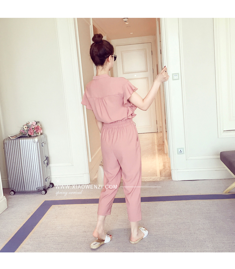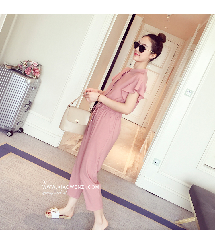 褲子2018夏裝韓版雪紡九分連體褲女連衣褲套裝高腰顯瘦休閑褲1入
