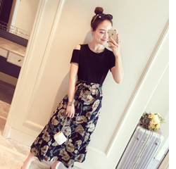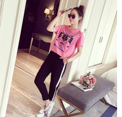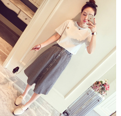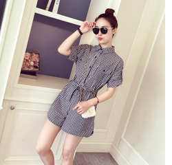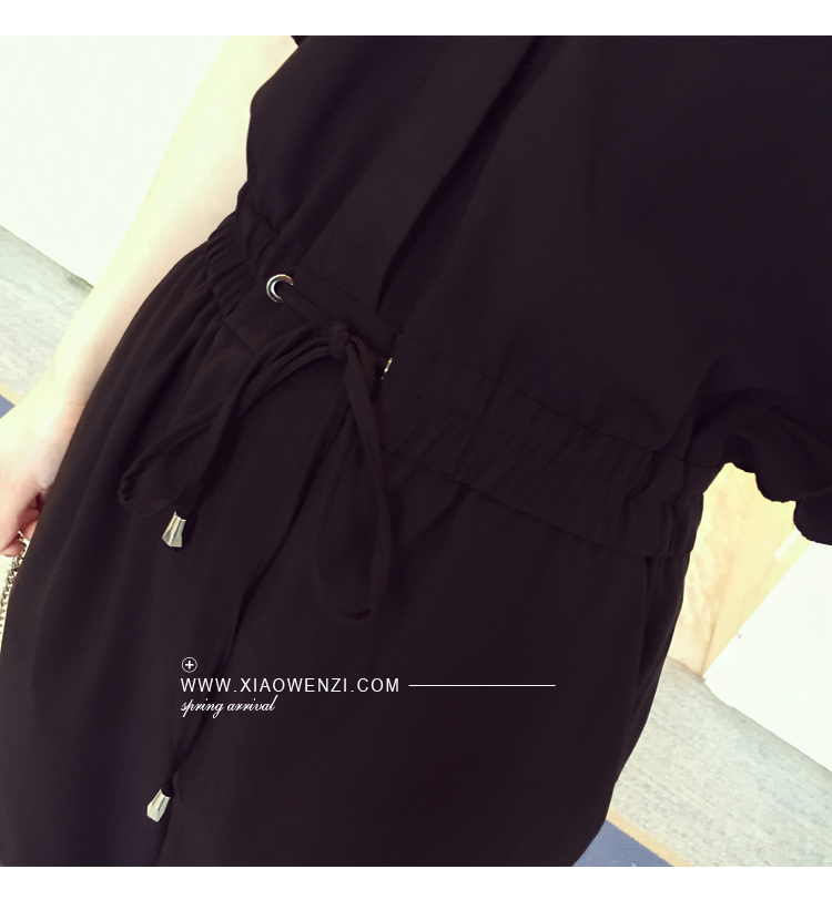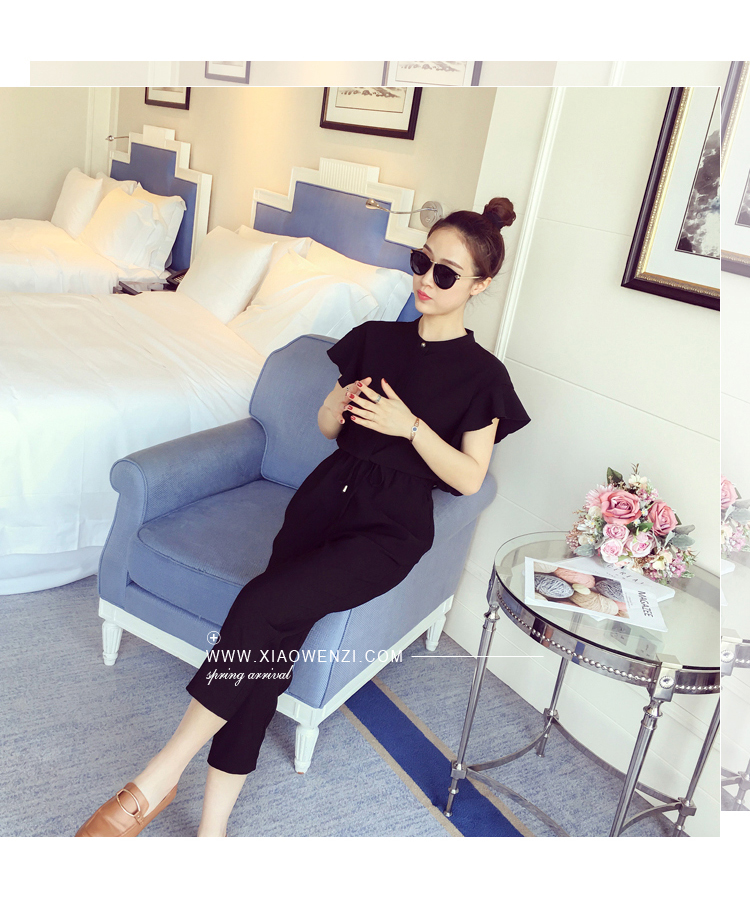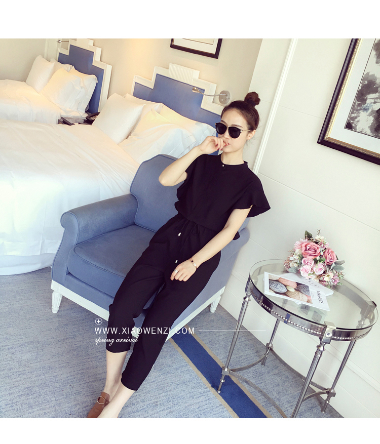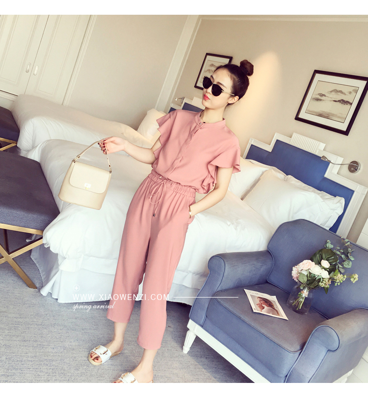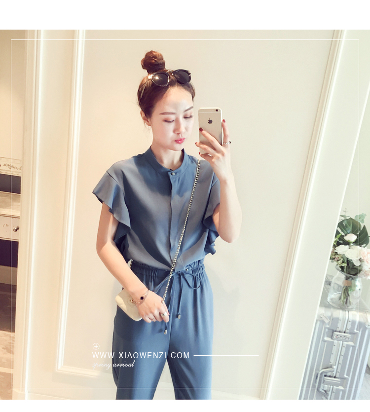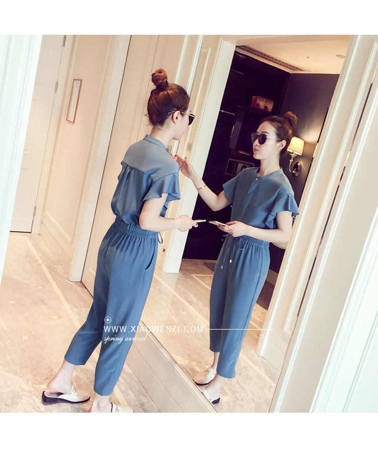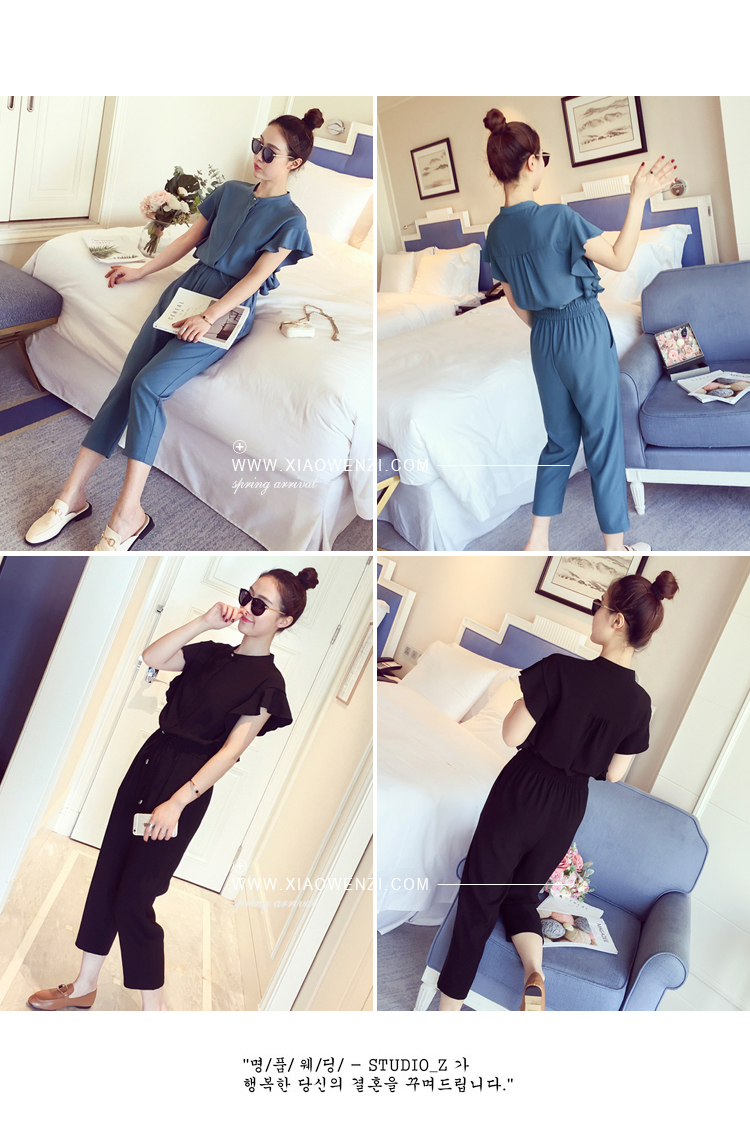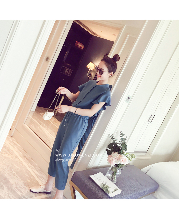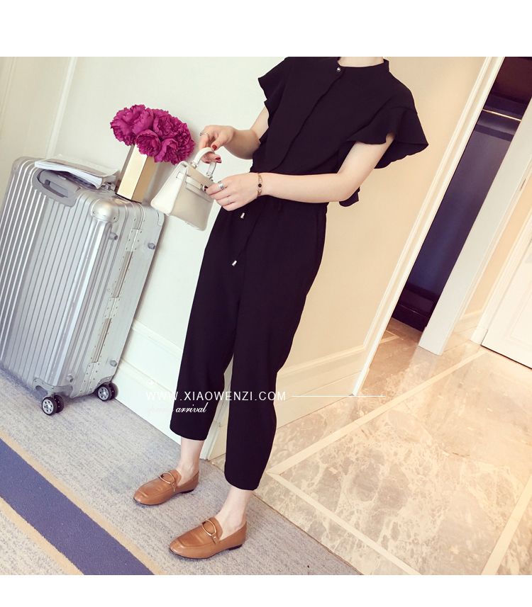 褲子2018夏裝韓版雪紡九分連體褲女連衣褲套裝高腰顯瘦休閑褲1入