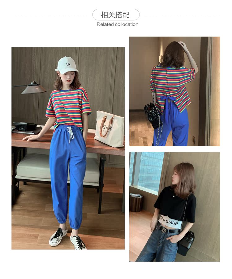 褲子女2019韓版夏季休閑時尚chic長褲潮運動褲寬松束腳休閑褲1入