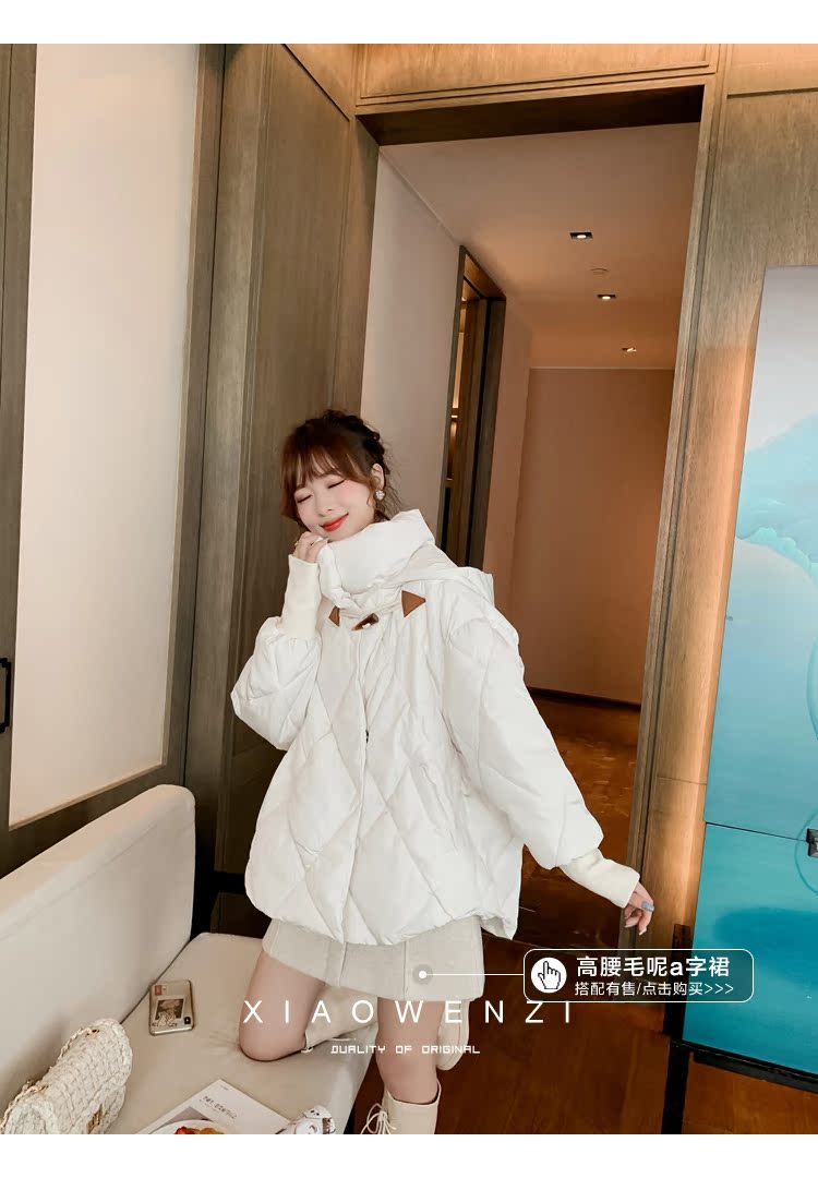 2019冬季短款加厚羽絨面包棉服女韓版寬松小個子連帽外套上衣1入