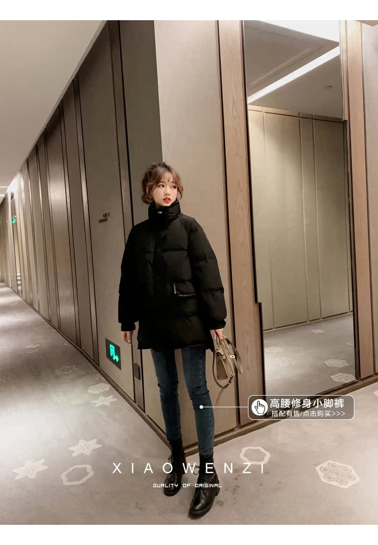 2019冬季加厚保暖立領羽絨服女面包服韓版寬松中長款棉衣外套1入