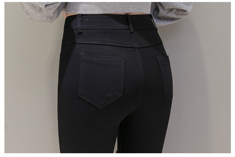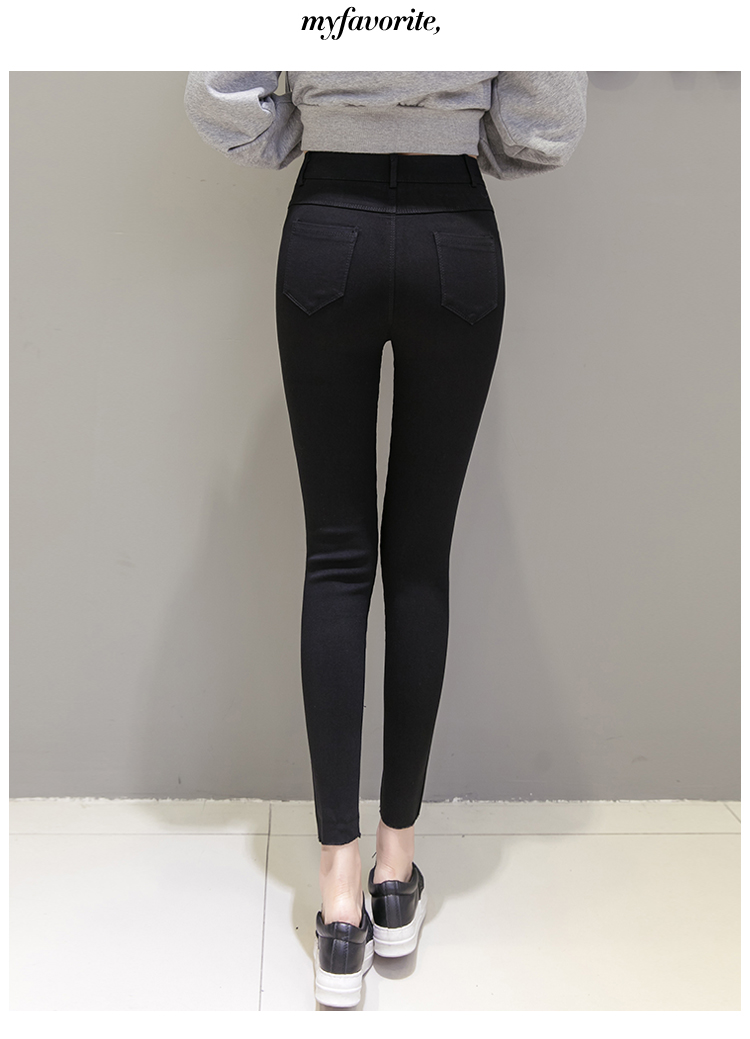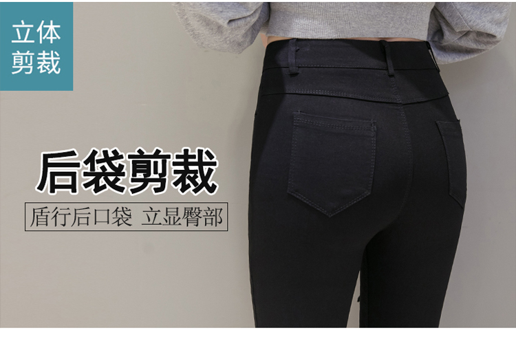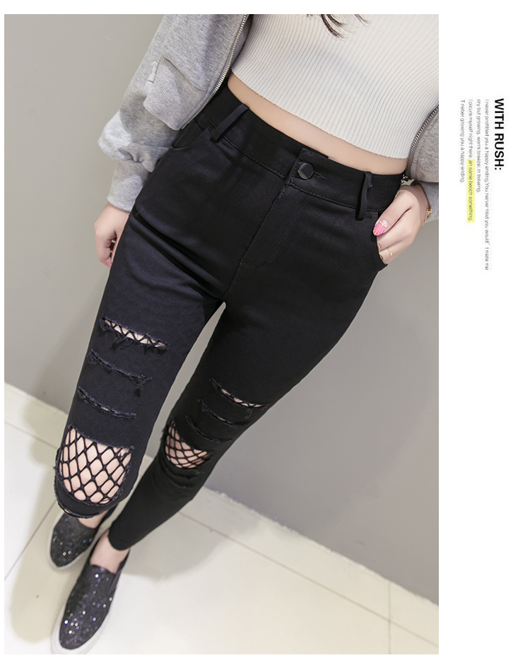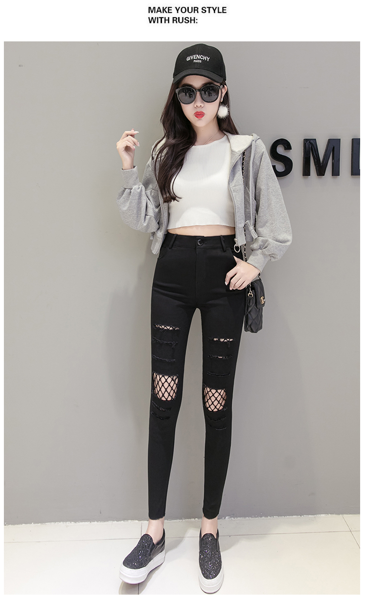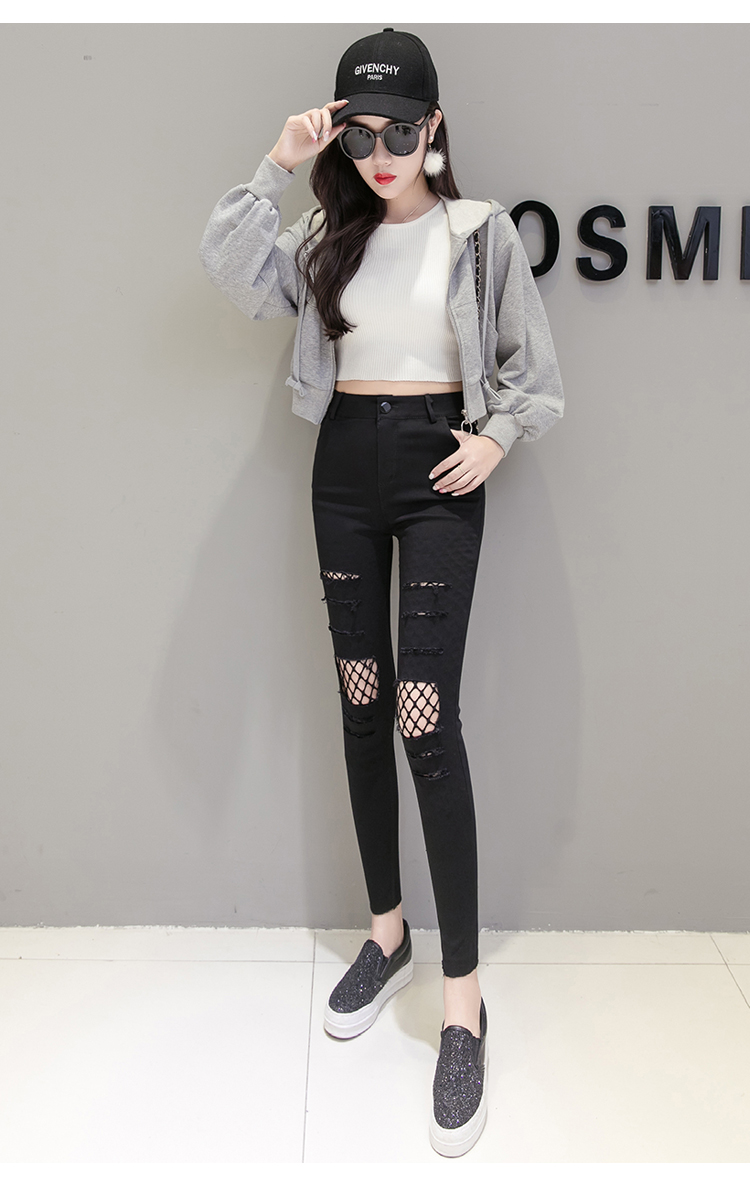 2019春秋破洞漁網仿牛仔打底褲女高腰彈力顯瘦九分小腳鉛筆褲1入