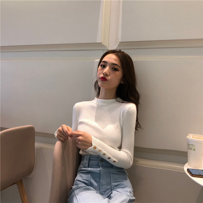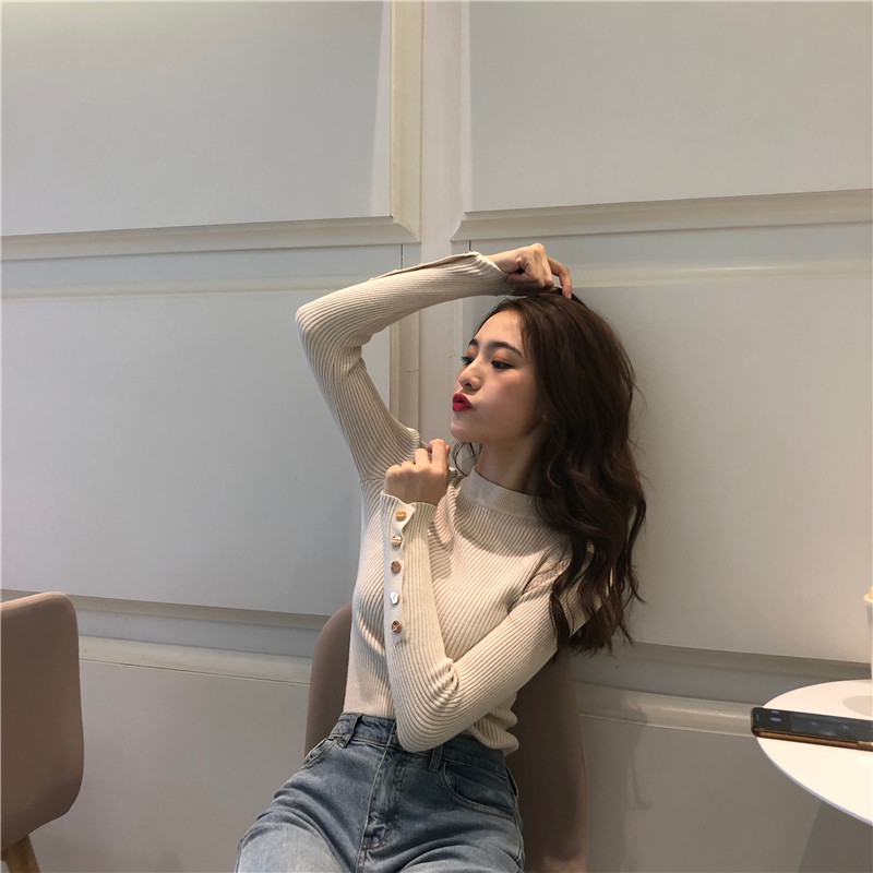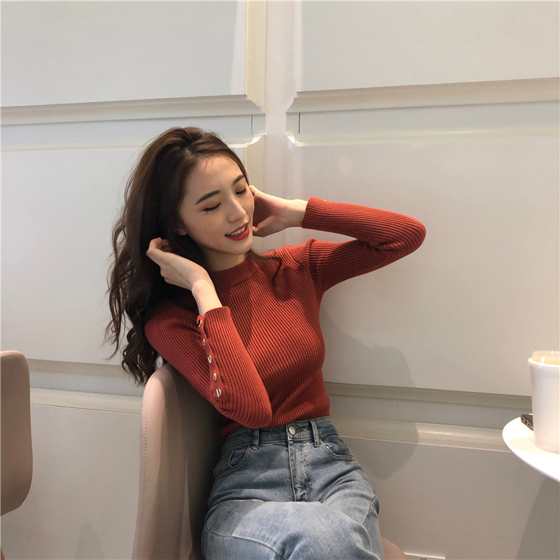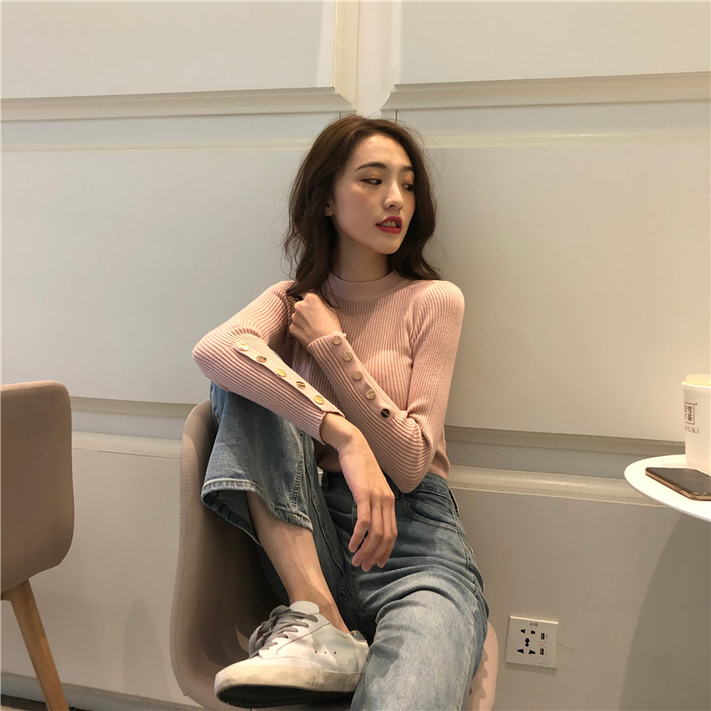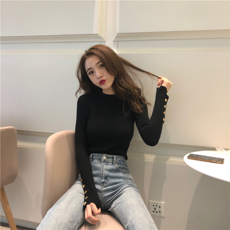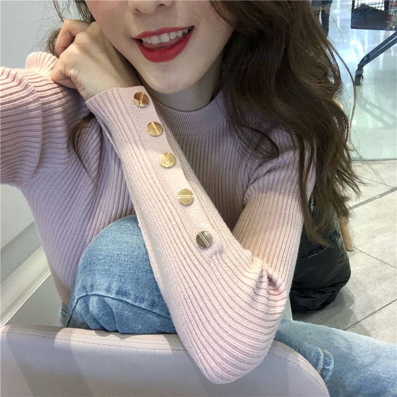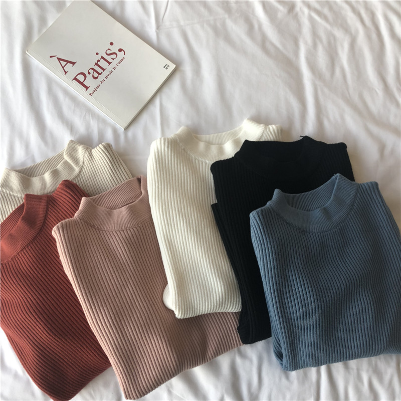 2019韓版長袖內搭針織打底衫百搭緊身上衣高領洋氣女裝潮1入