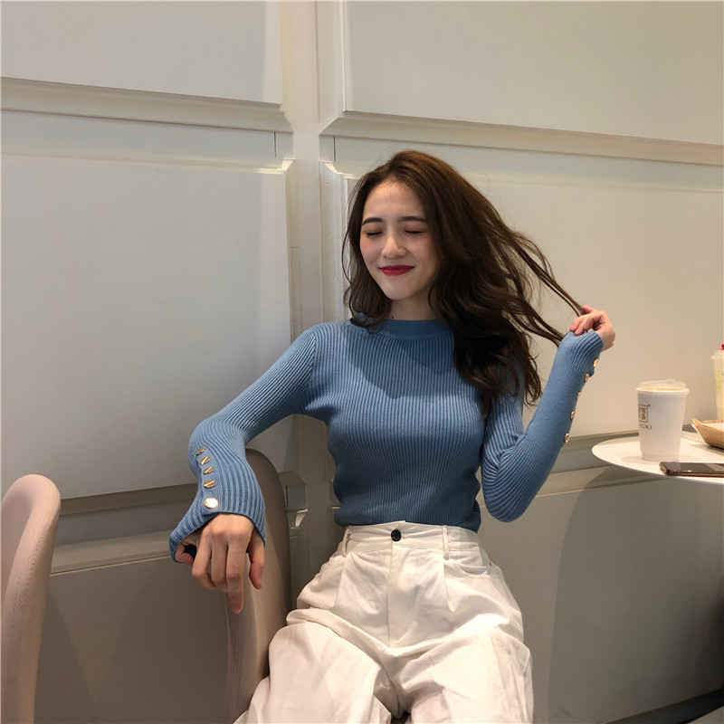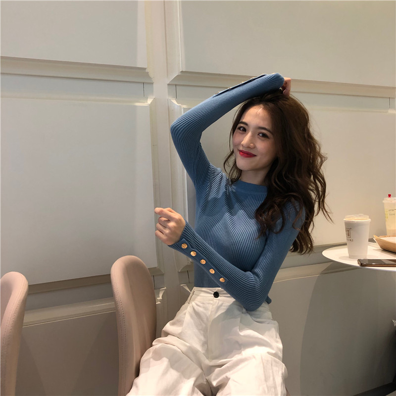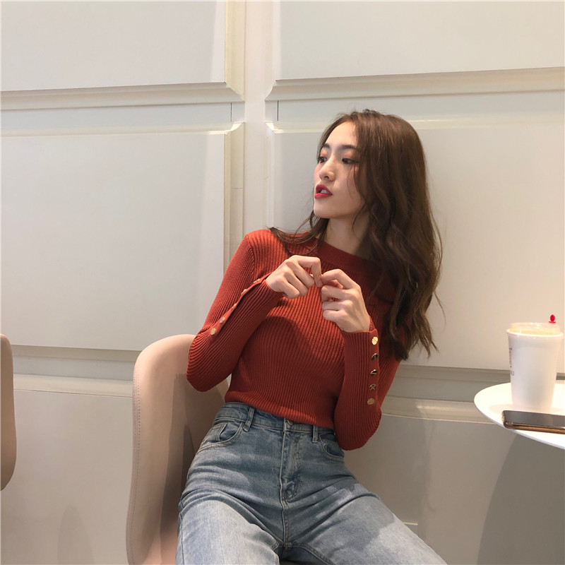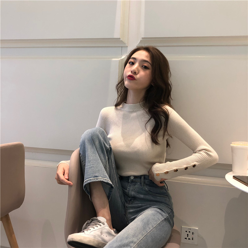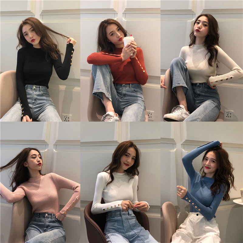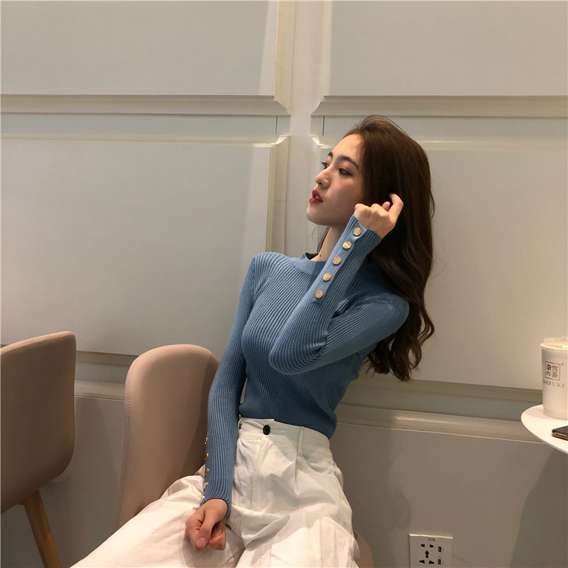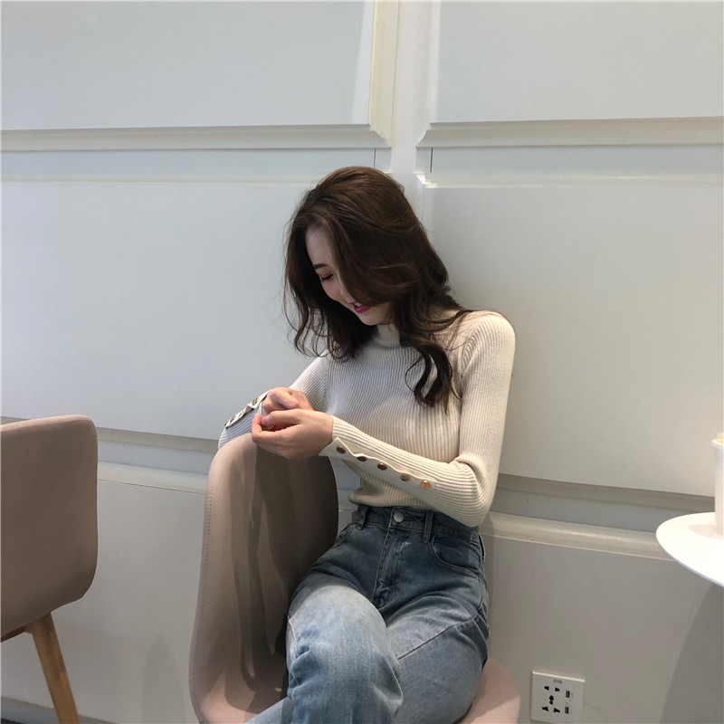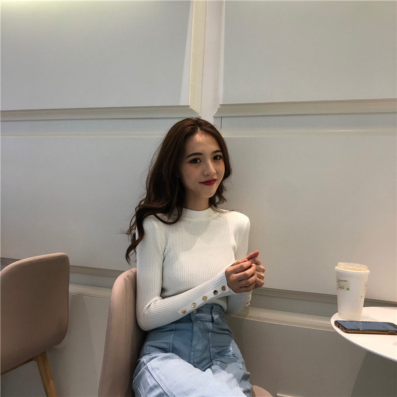 2019韓版長袖內搭針織打底衫百搭緊身上衣高領洋氣女裝潮1入
