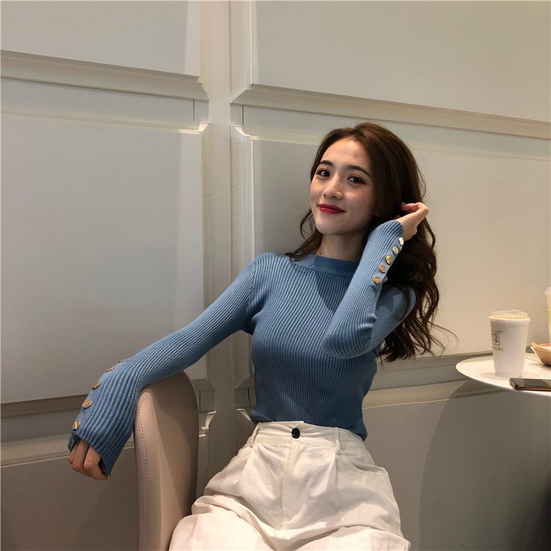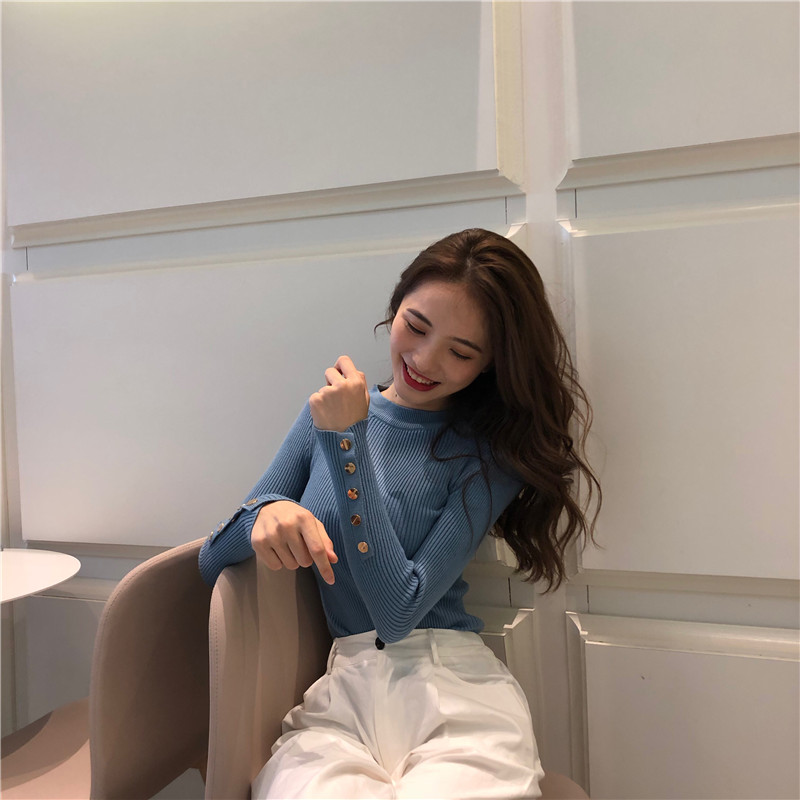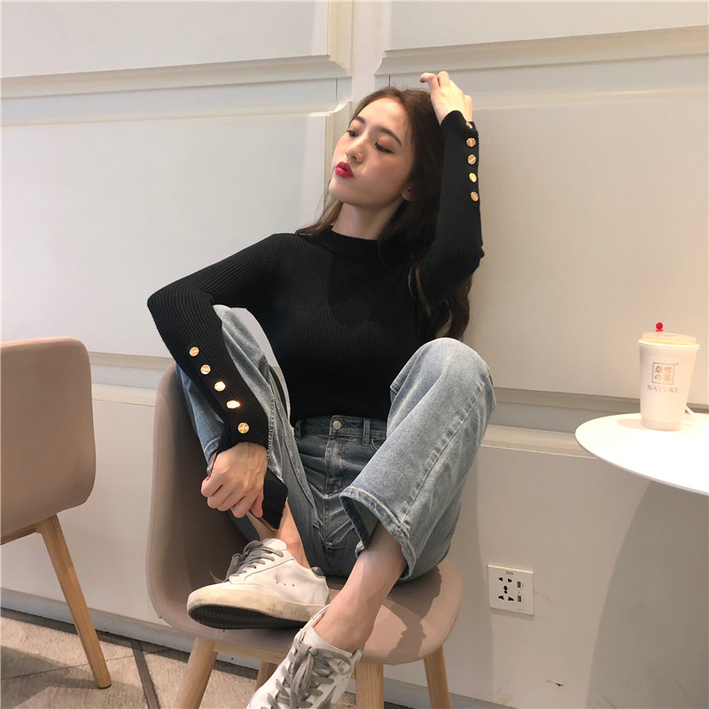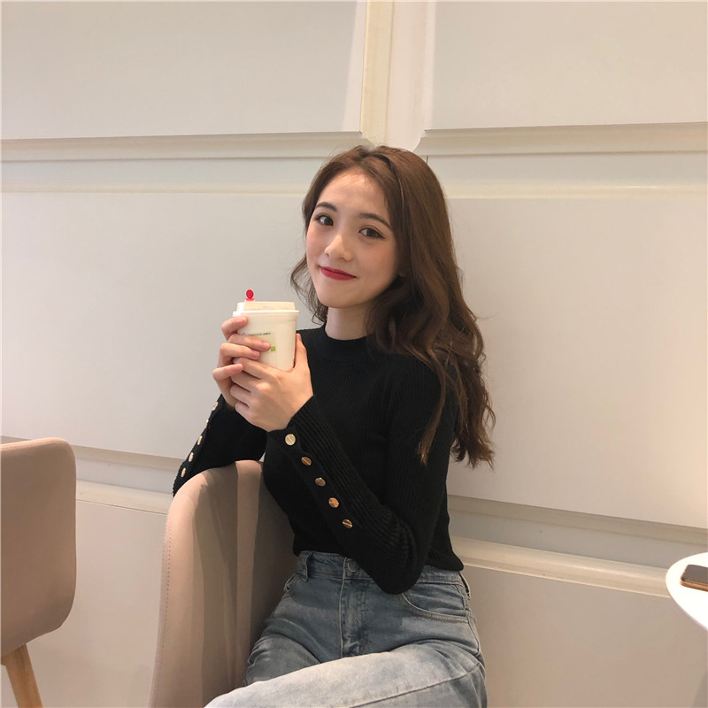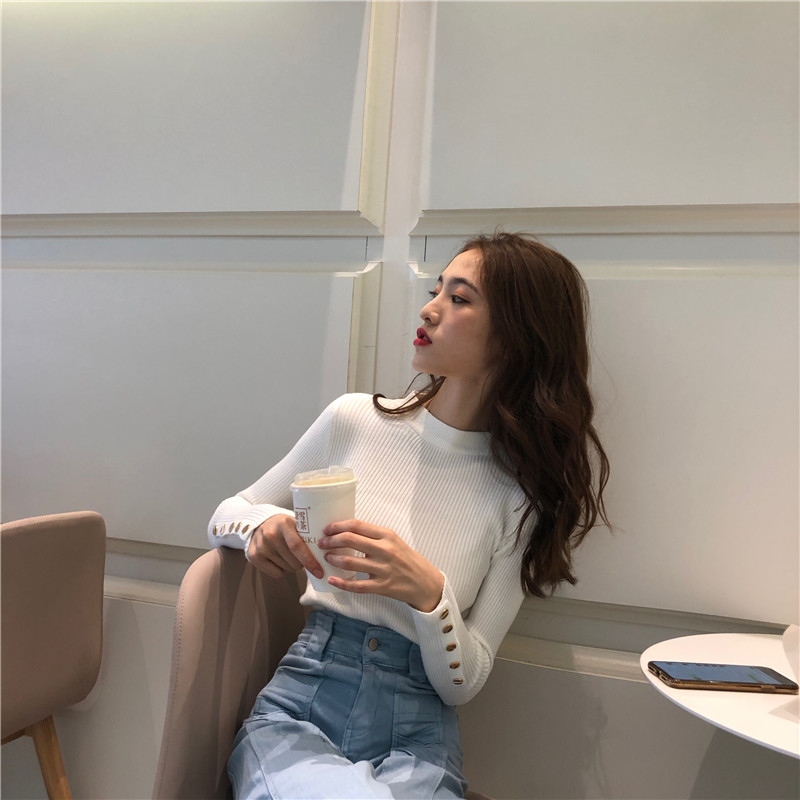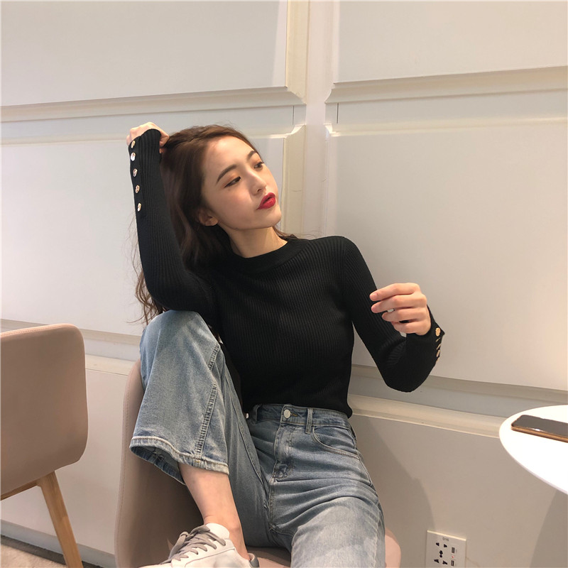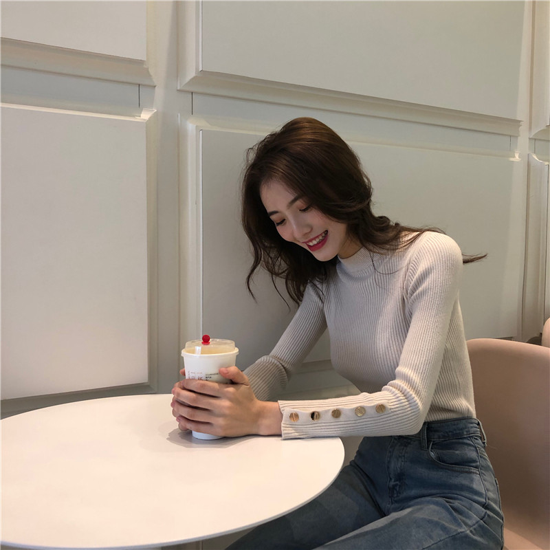 2019韓版長袖內搭針織打底衫百搭緊身上衣高領洋氣女裝潮1入