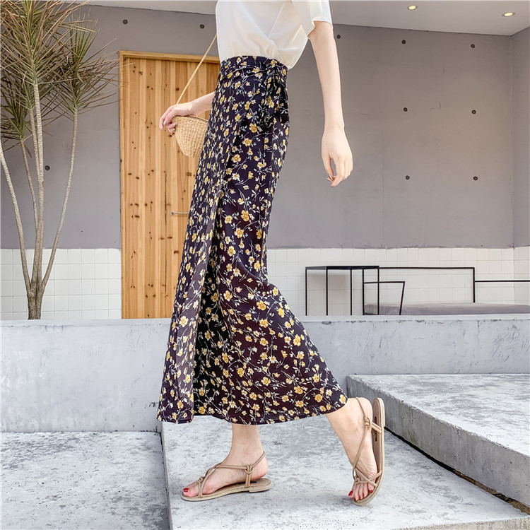 長裙女夏雪紡一片式中長款碎花不規則魚尾裹裙港味半身裙chic1入