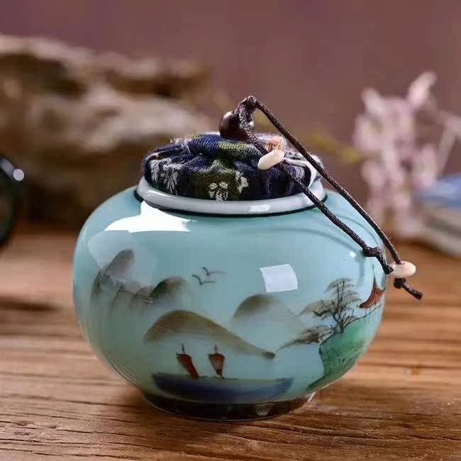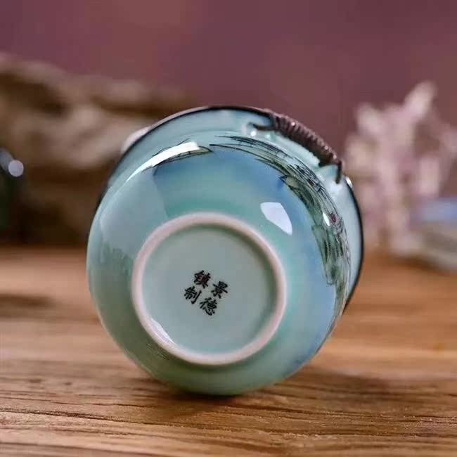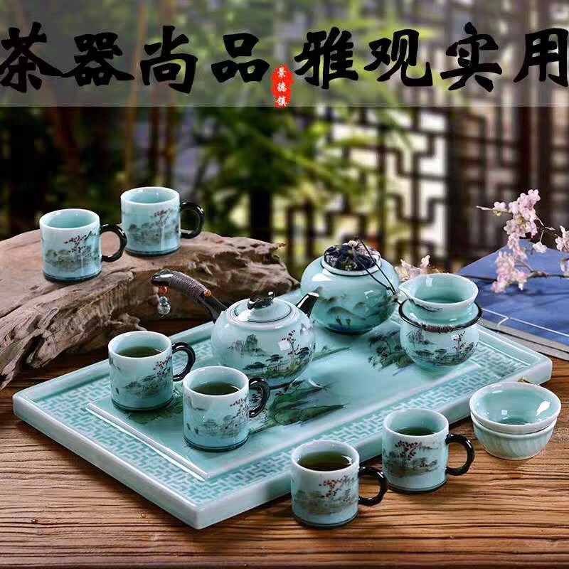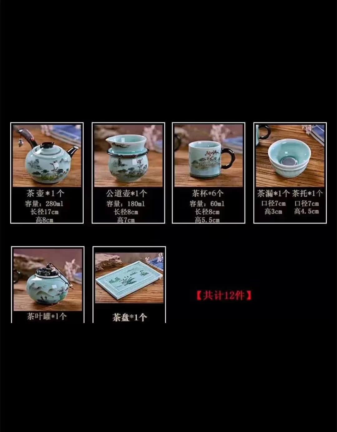 青釉手繪山水功夫茶具手工高白瓷茶具高檔整套茶具禮盒包裝1入