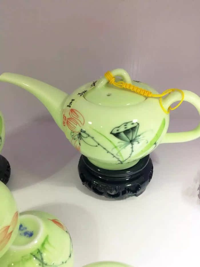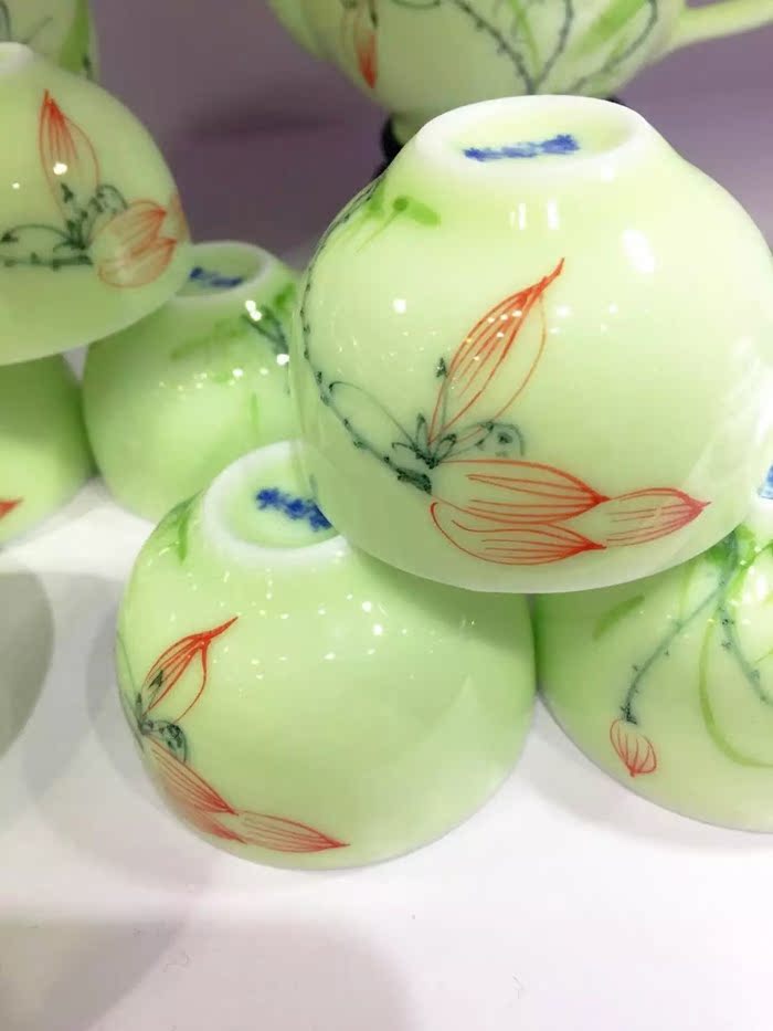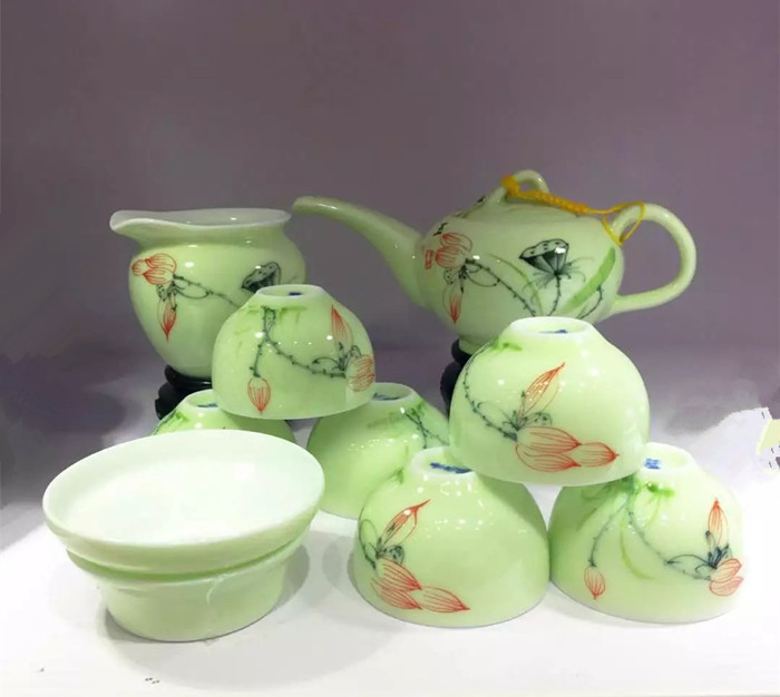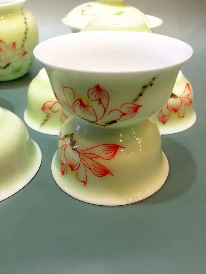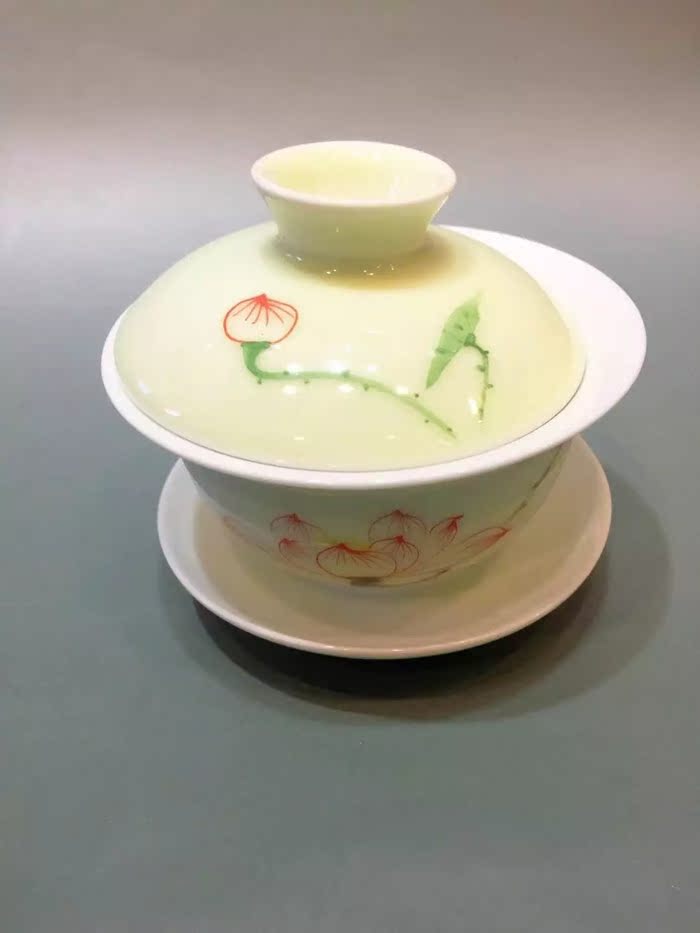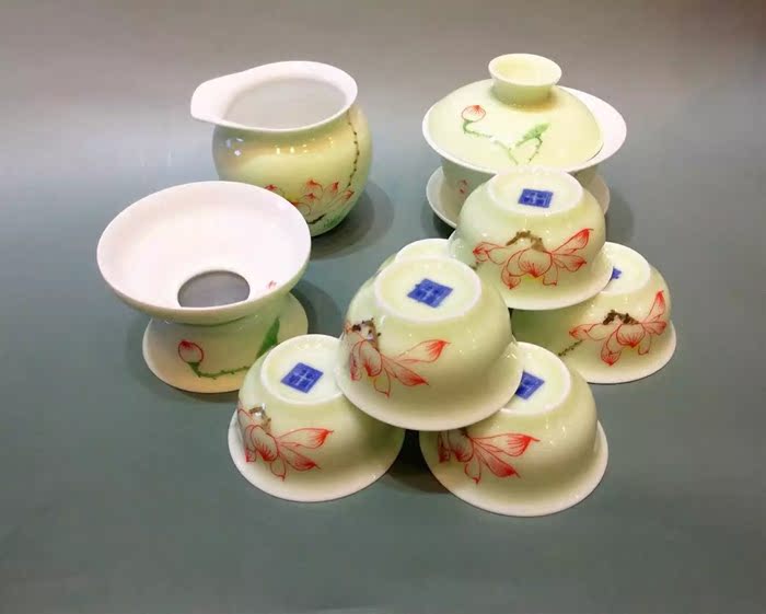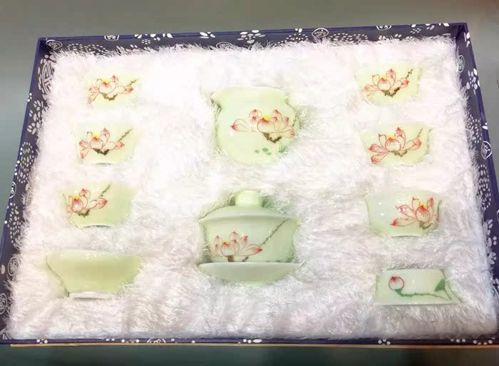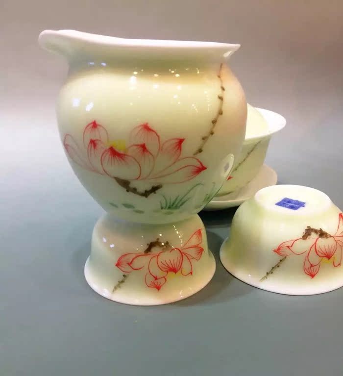青釉陶瓷茶具手繪荷花蓮花整套家用功夫茶具套裝蓋碗茶壺杯1入