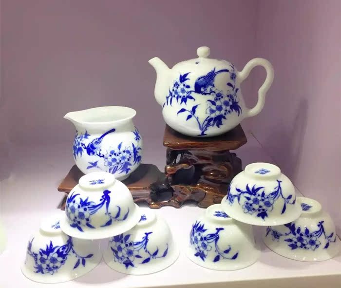 陶瓷手繪青花瓷功夫茶具套裝手工高白瓷茶具高檔整套茶具1入