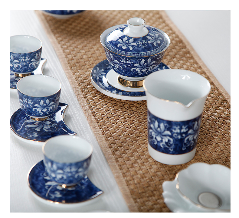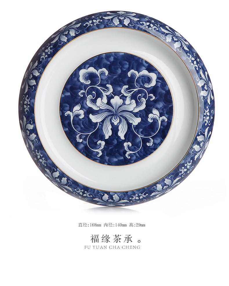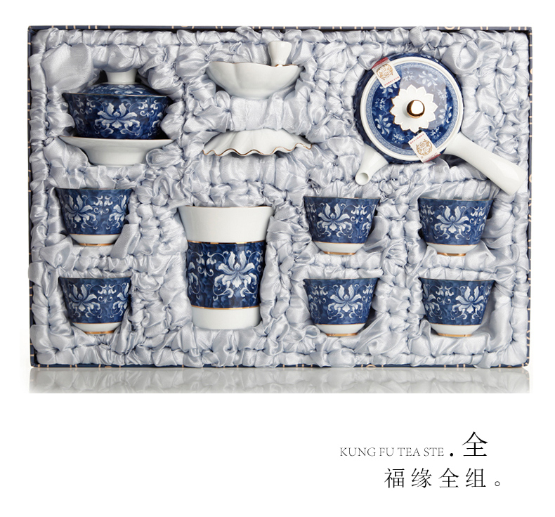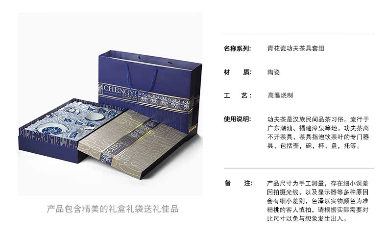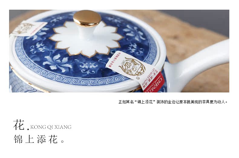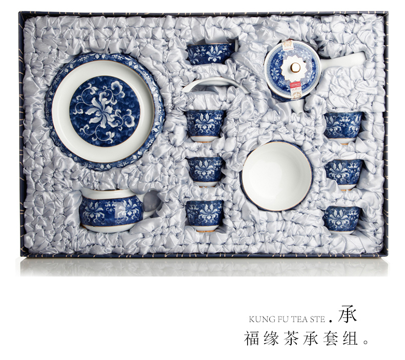 青花瓷整套功夫茶具套裝 高白錦上添花茶具 茶壺茶承茶海禮盒1入