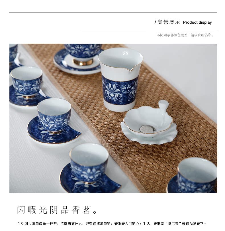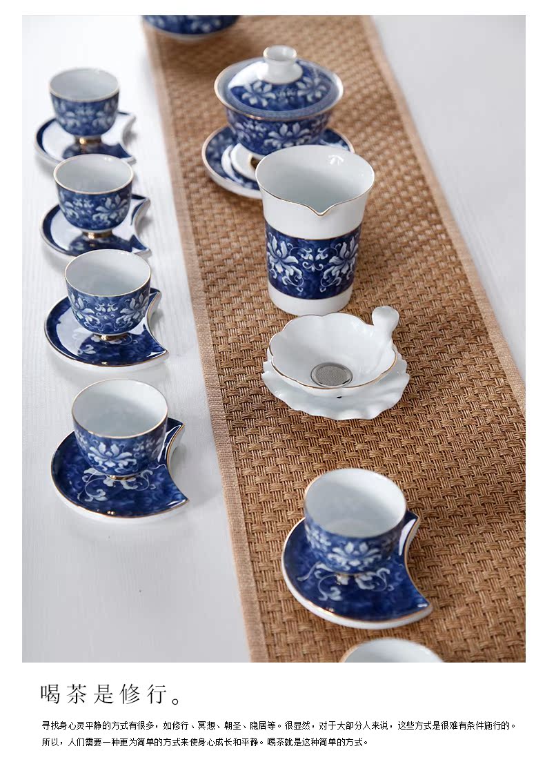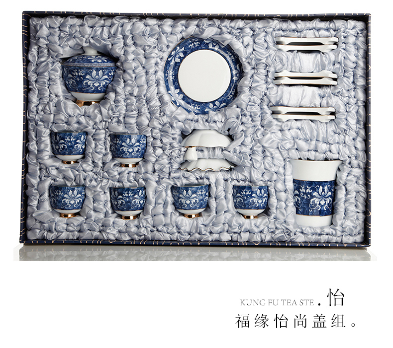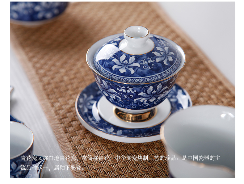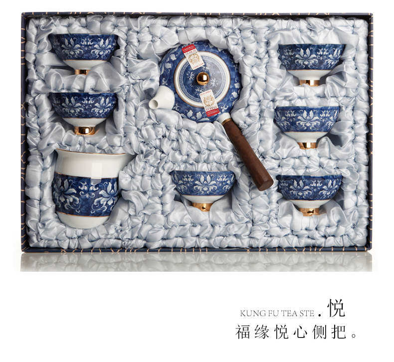 青花瓷整套功夫茶具套裝 高白錦上添花茶具 茶壺茶承茶海禮盒1入
