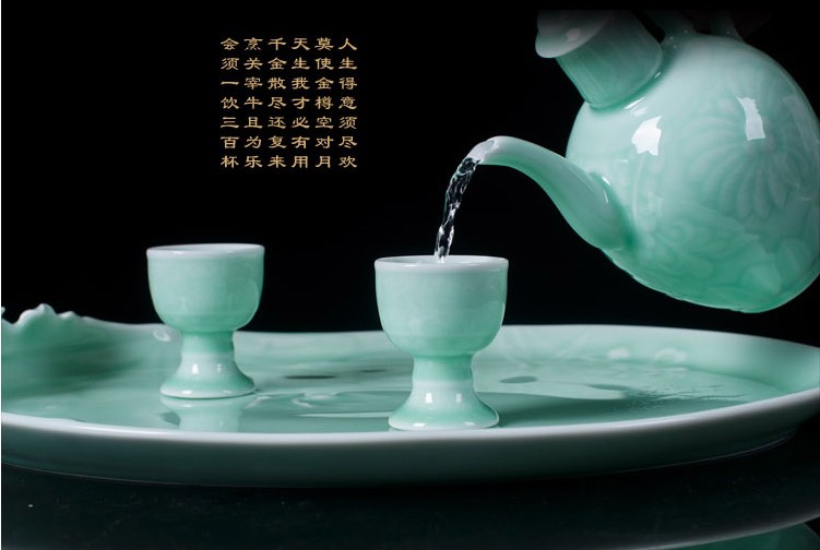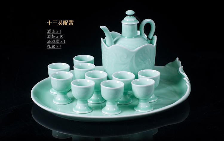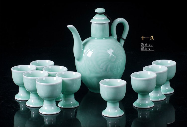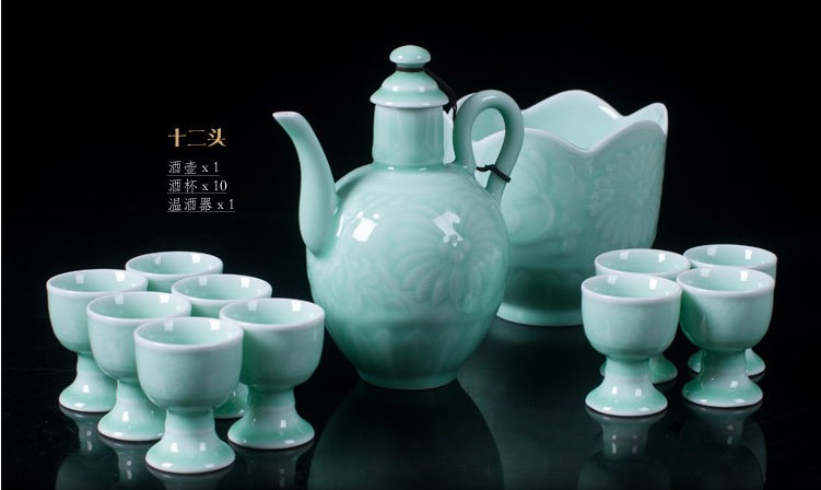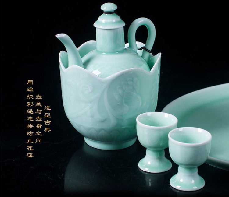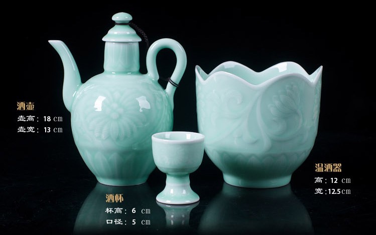陶瓷青釉酒具套裝仿古白酒黃酒溫酒壺燙酒暖酒壺烈杯高腳杯1入