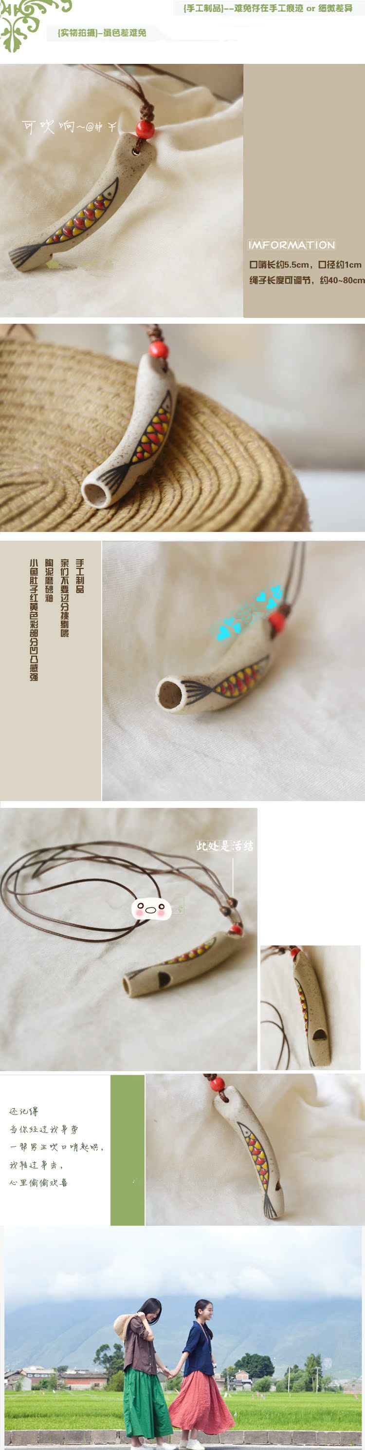 陶瓷口哨項鏈文藝范長款配飾魚兒彎彎項鏈創意閨蜜生日禮物1入