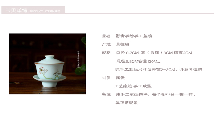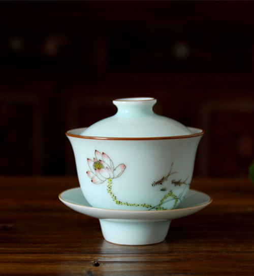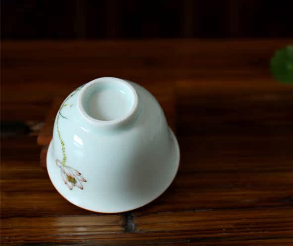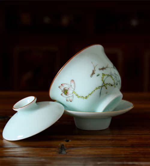 陶瓷 功夫茶具 手繪蓮花影青蓋碗 水杯 三才碗 蓋 碟 碗1入
