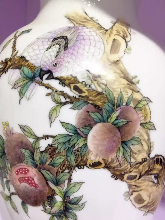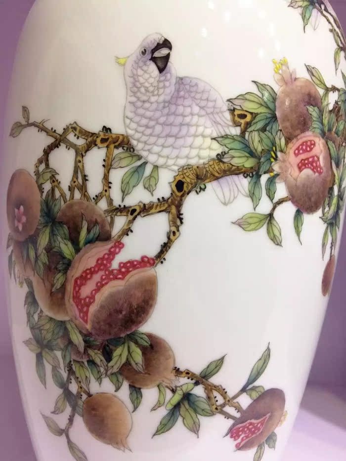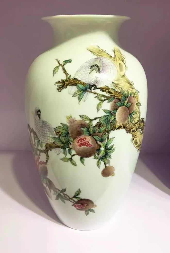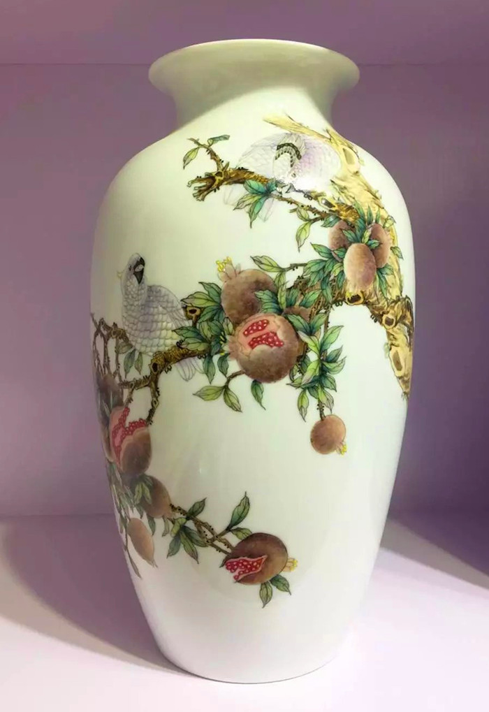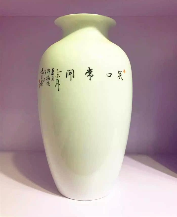 陶瓷名家手繪粉彩花瓶笑口常開高檔花瓶擺件家居裝飾工藝品1入
