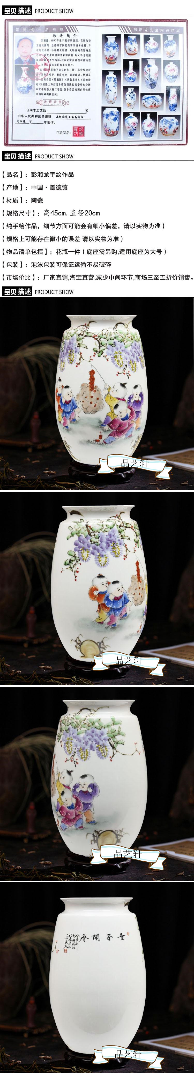 陶瓷器手繪粉彩新彩童子花瓶冬瓜瓶花插家居博古架家居擺件1入