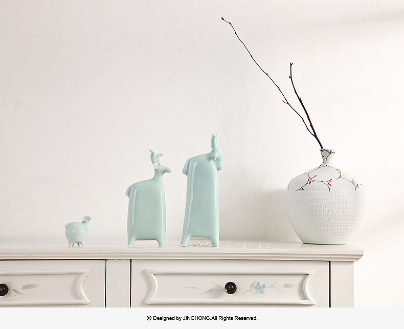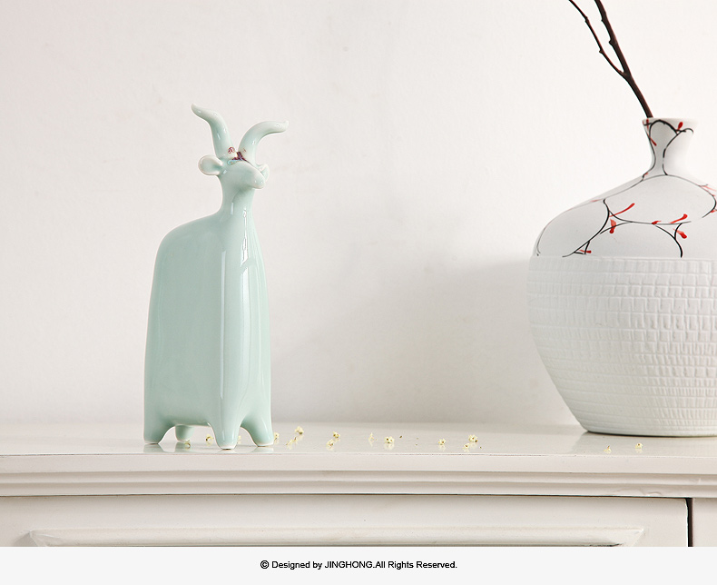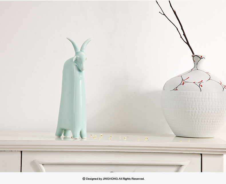 影青陶瓷可愛三只羊家居擺件三羊開泰擺件客廳工藝品擺件1入