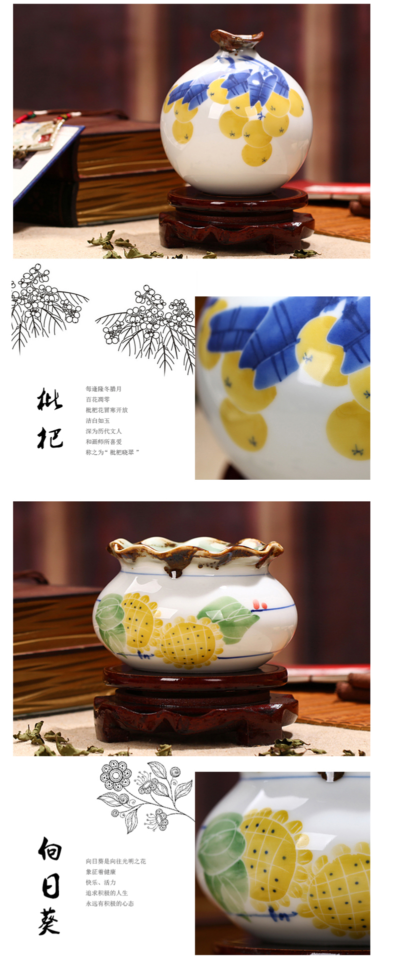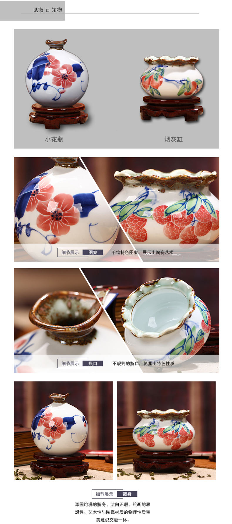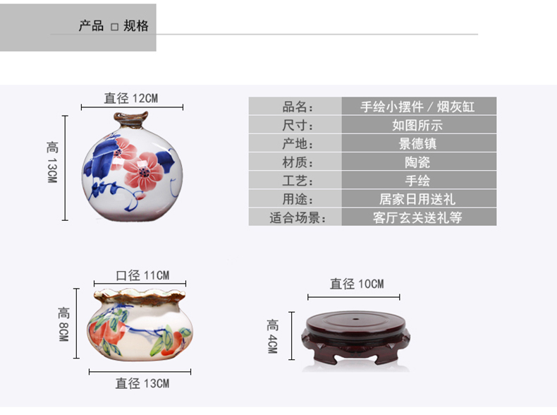 手繪陶瓷田園小花瓶煙灰缸工藝品客廳家居裝飾品擺設品擺件1入