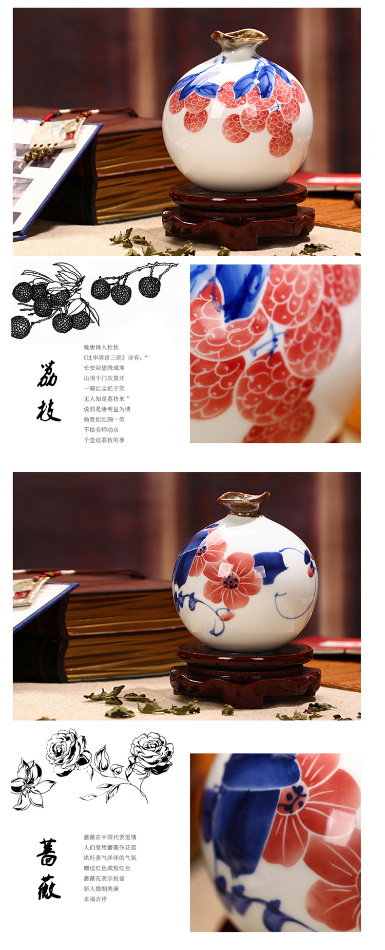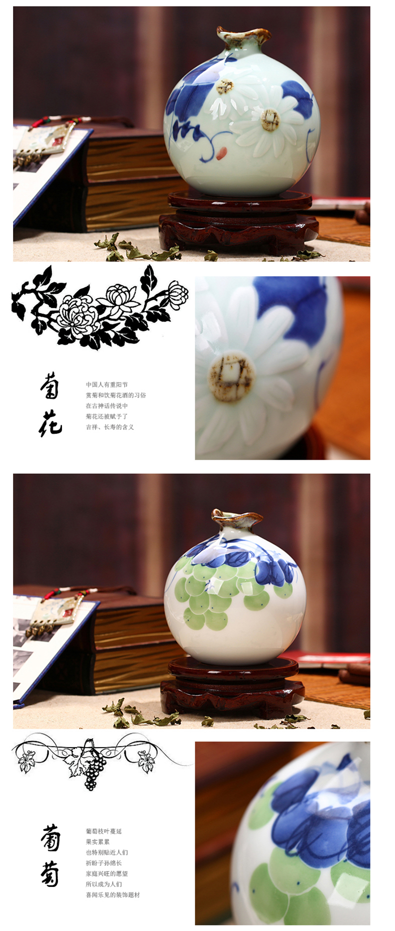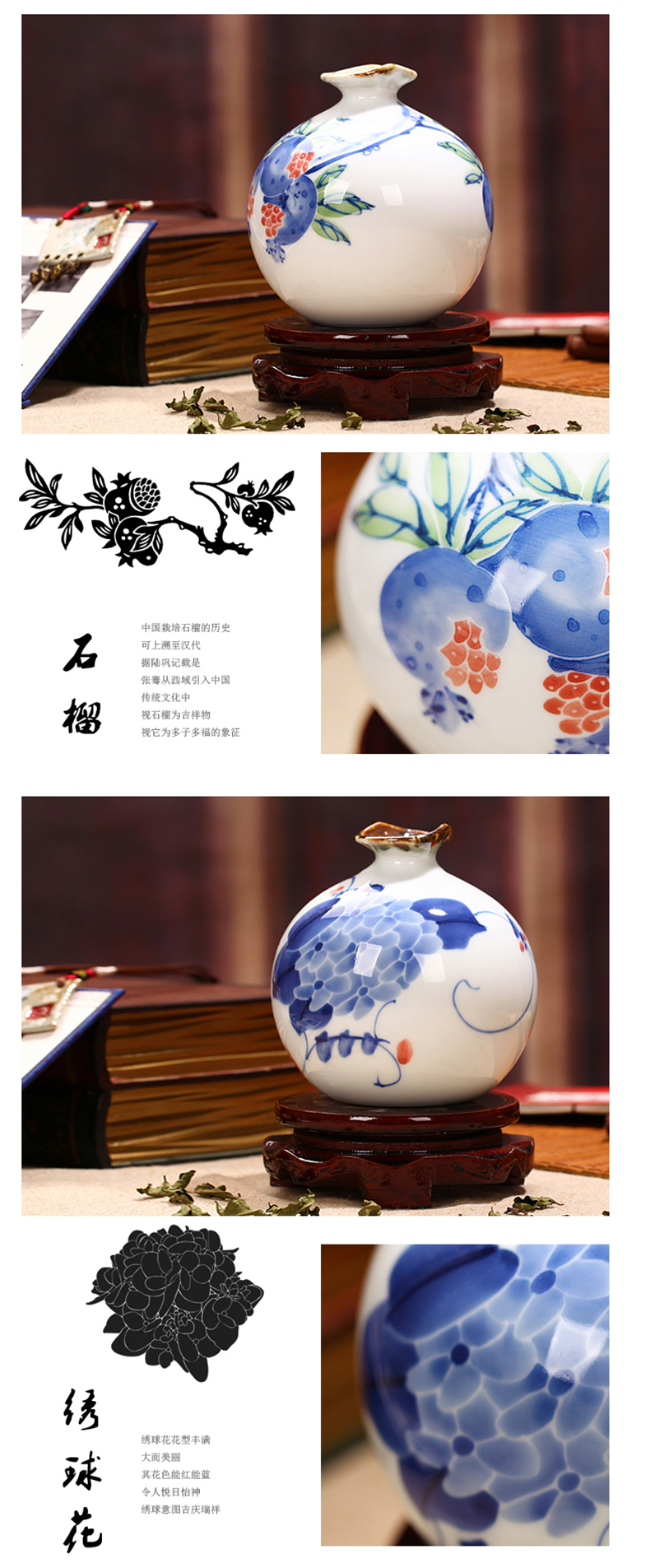 手繪陶瓷田園小花瓶煙灰缸工藝品客廳家居裝飾品擺設品擺件1入