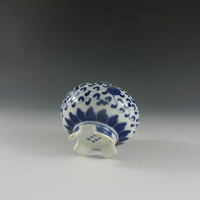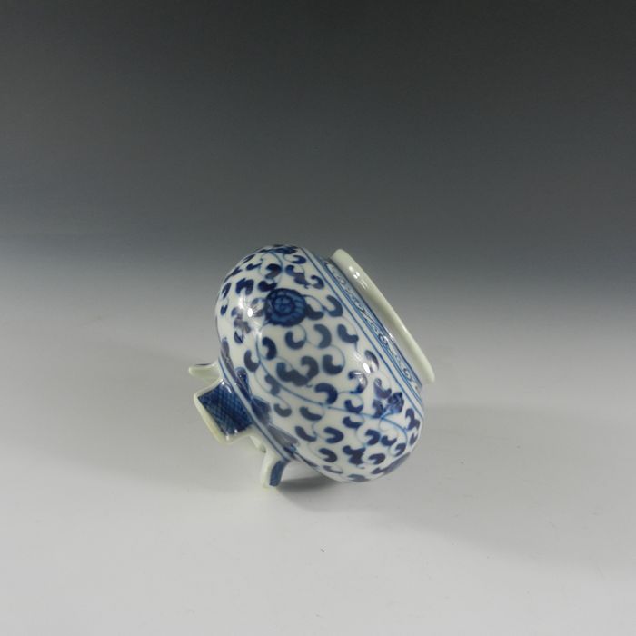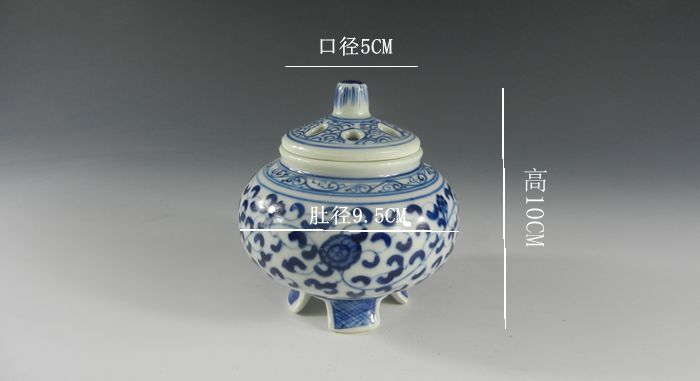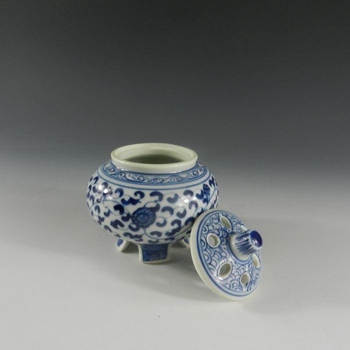仿古瓷器小花瓶手工手繪青花纏枝蓮紋三足香薰 香爐 擺件1入