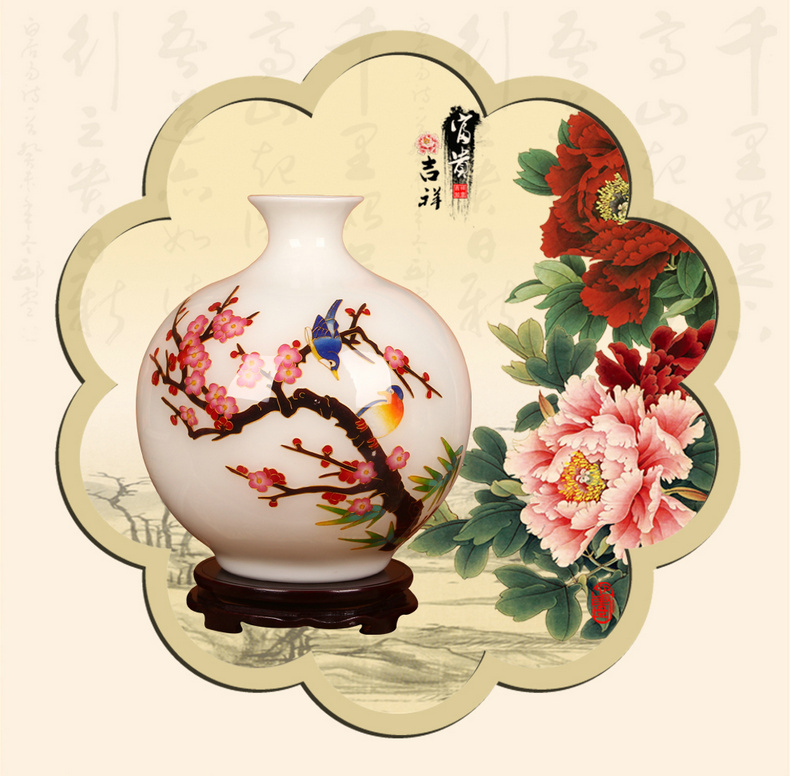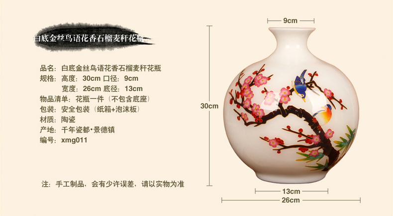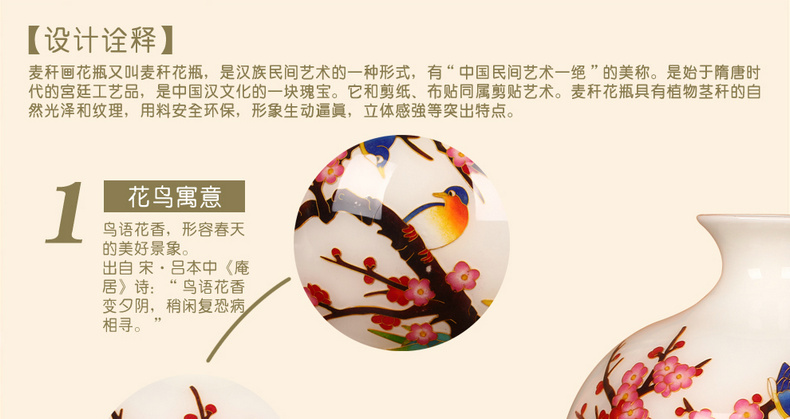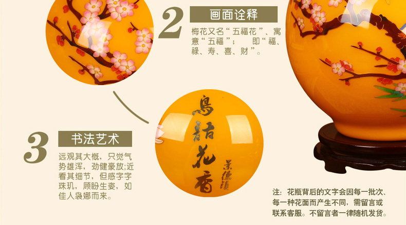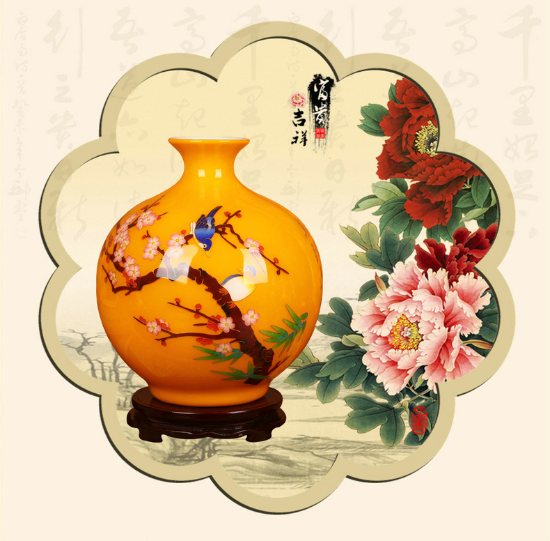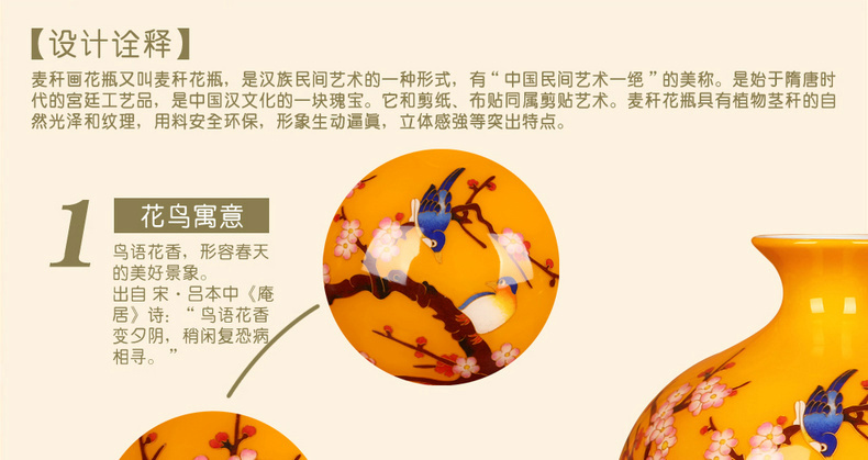 陶瓷器 高檔金絲麥稈喜上眉梢黃色花瓶 時尚家居工藝品擺件1入