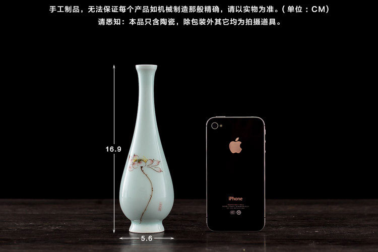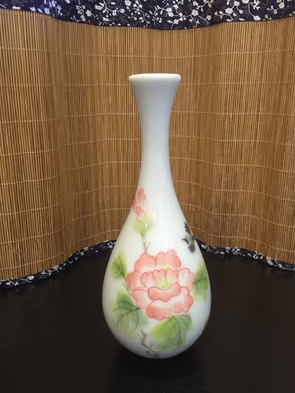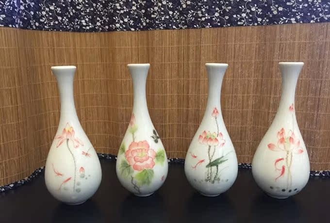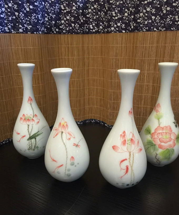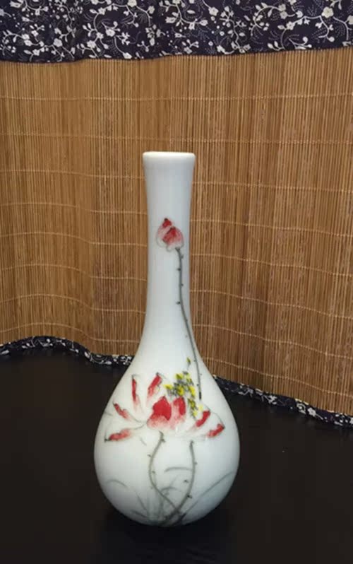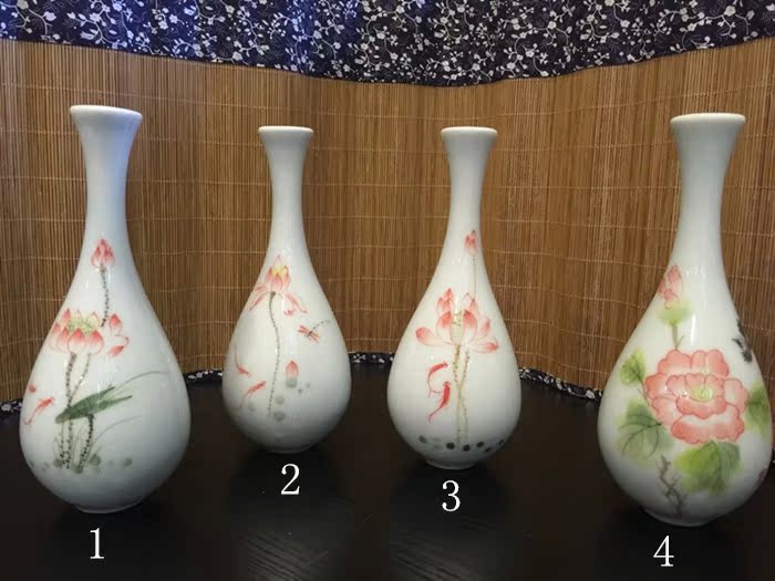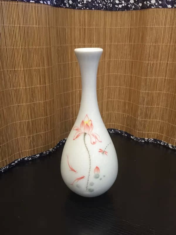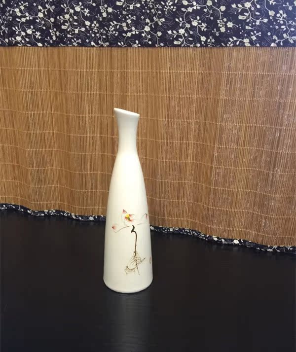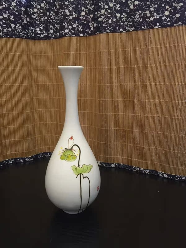 陶瓷花插手繪荷花大肚花瓶陶瓷擺件玉凈瓶家居桌面茶道擺件1入