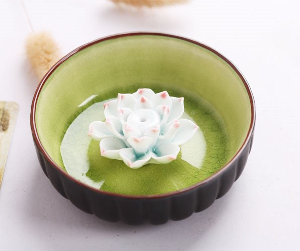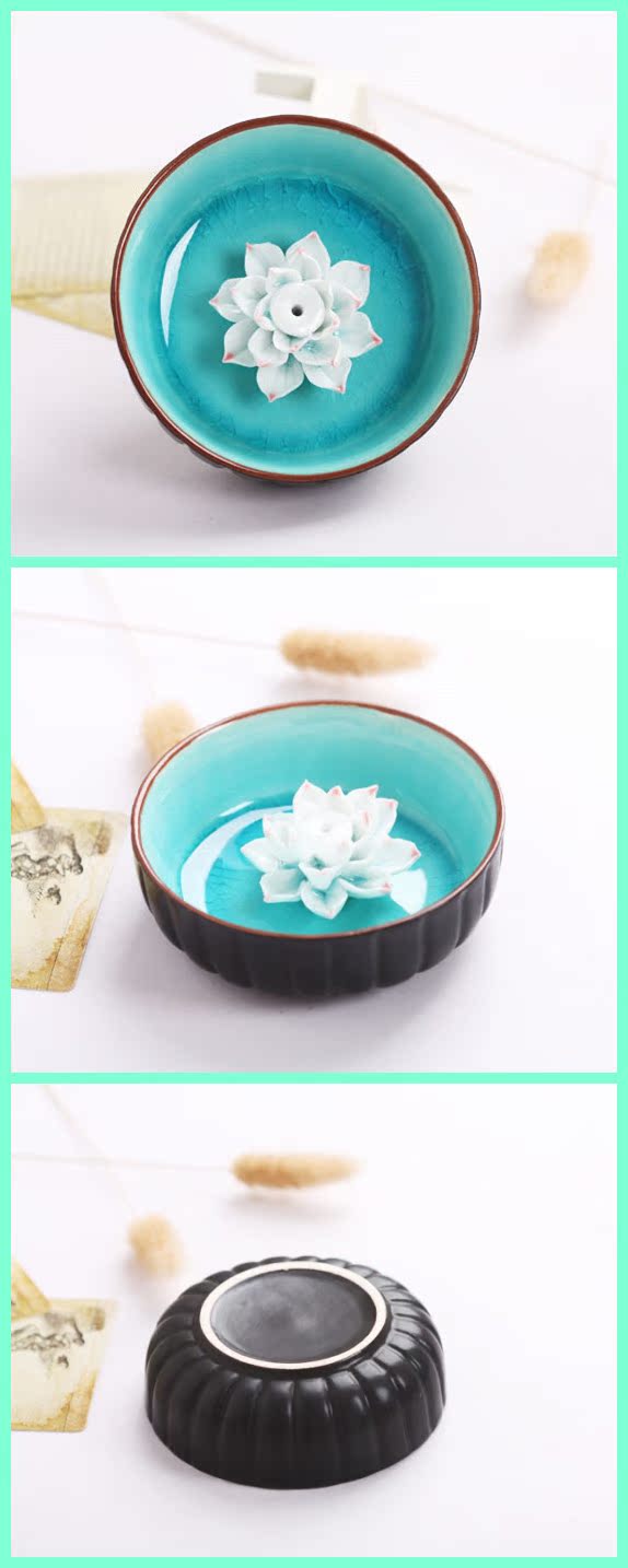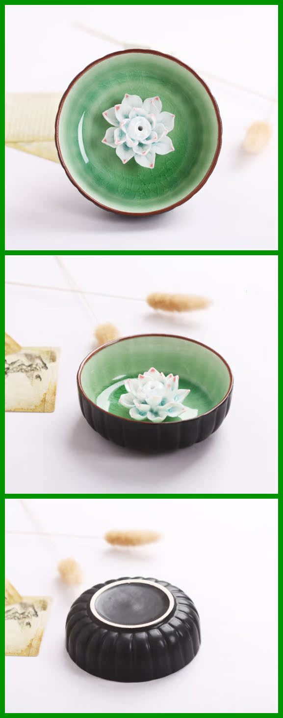 【產品用法】;碗是裂紋釉工藝,非常精美,荷花上面有個小孔 專門插小香 或則可以用盤香直接放在荷花也行,