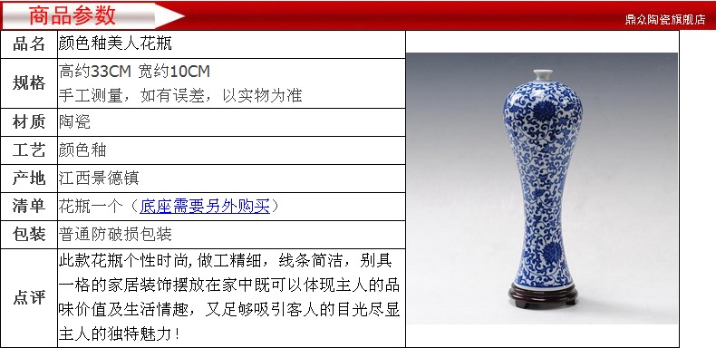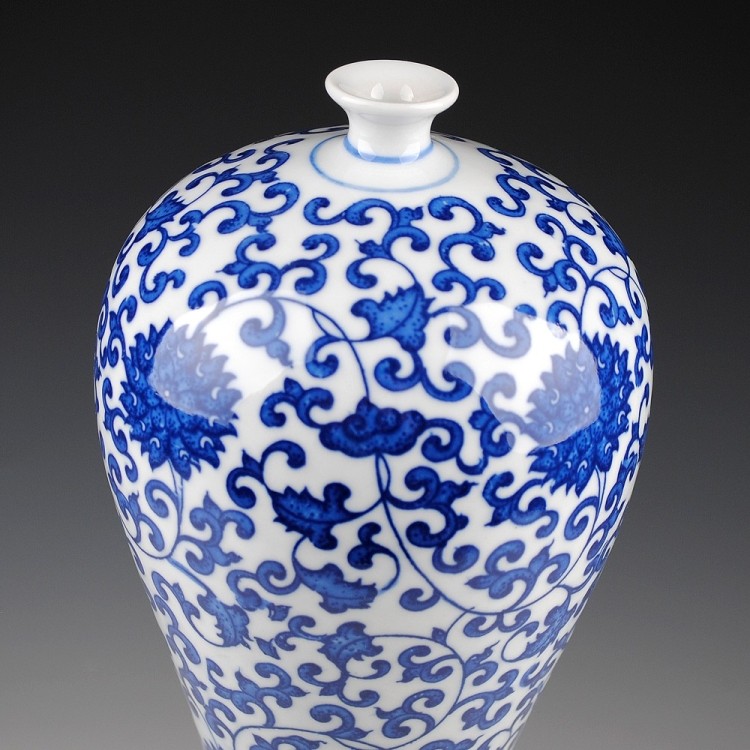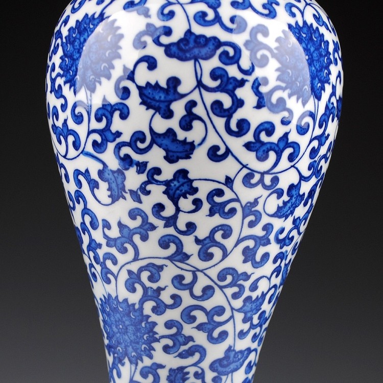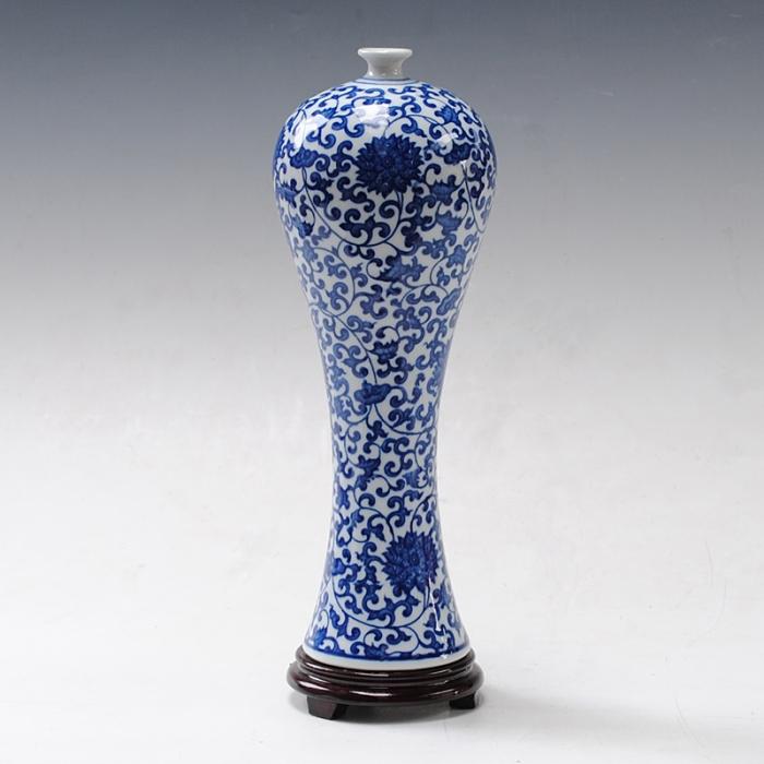 陶瓷器 明清青花瓷花瓶現代時尚工藝品擺設纏枝美人瓶1入