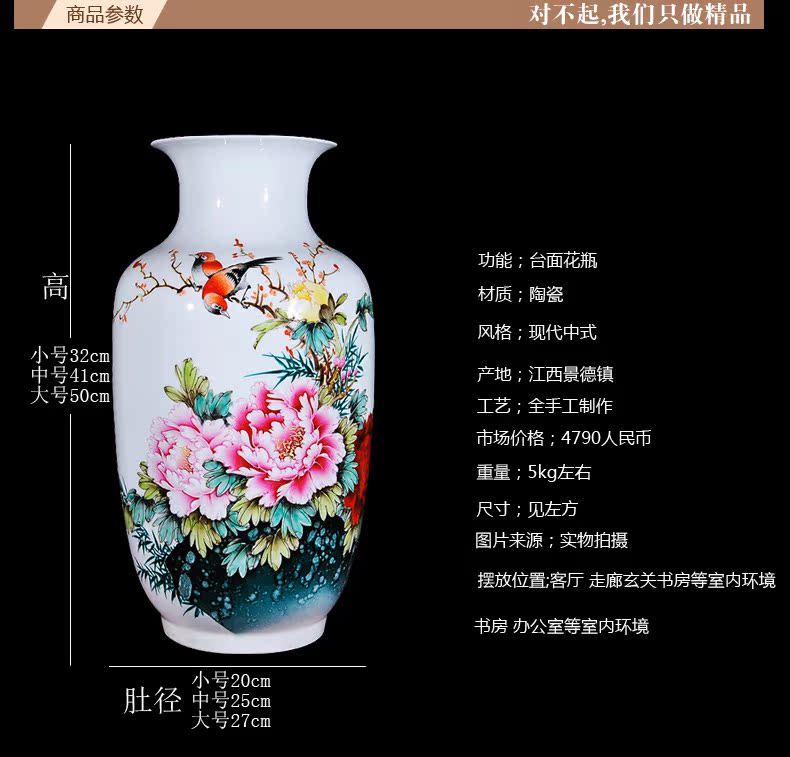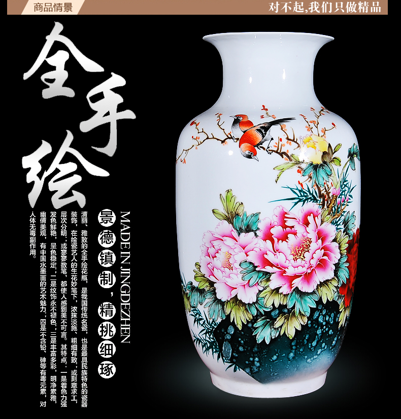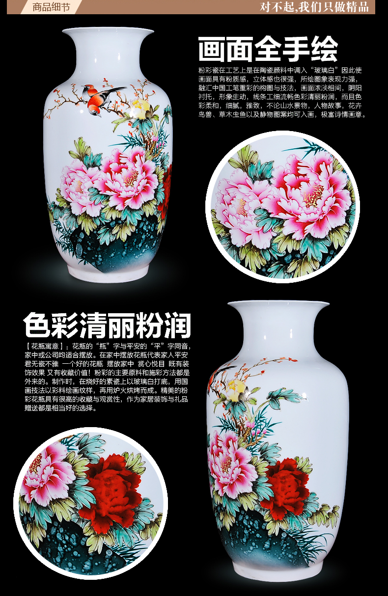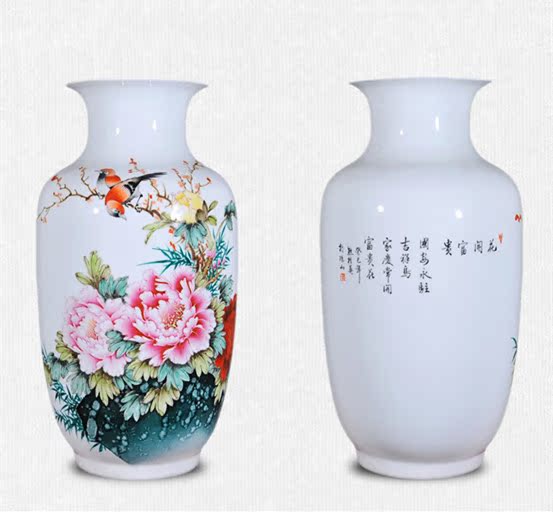 陶瓷器 熊桂英手繪粉彩花開富貴花瓶 現代時尚裝飾工藝擺件1入