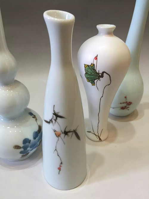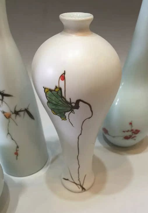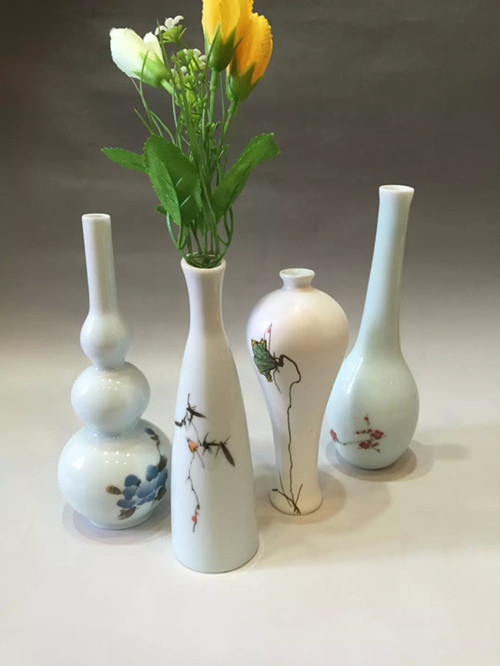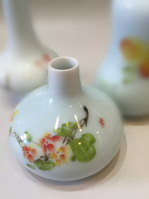 創意陶瓷手繪荷花青瓷復古小花插花瓶家居擺件茶道禮物1入
