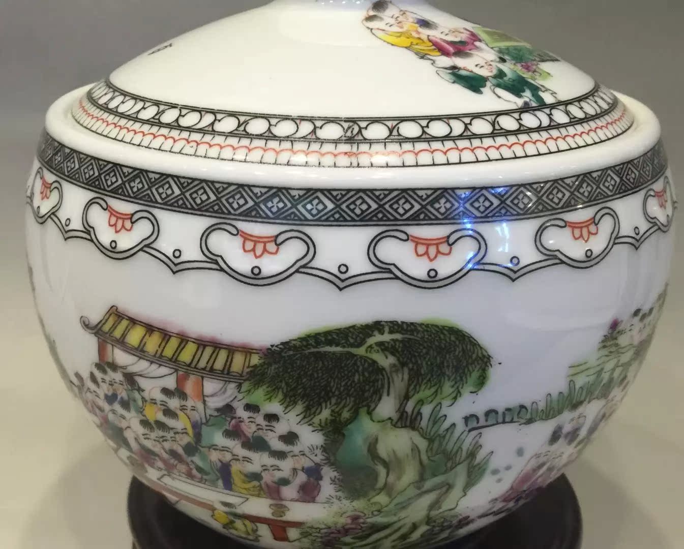 【材質】高溫陶瓷(1380度)、高白泥、高白釉(材質是陶瓷中的上品,可以說是最好的,基本無瑕齜) 【彩繪工藝】釉上彩/手工繪畫 【包裝】紙盒包裝 【產地】中國景德鎮 規格 高17cm 帶蓋22cm 直徑25cm(每個尺寸不一樣,差不多這個尺寸,請于收到實物為準)