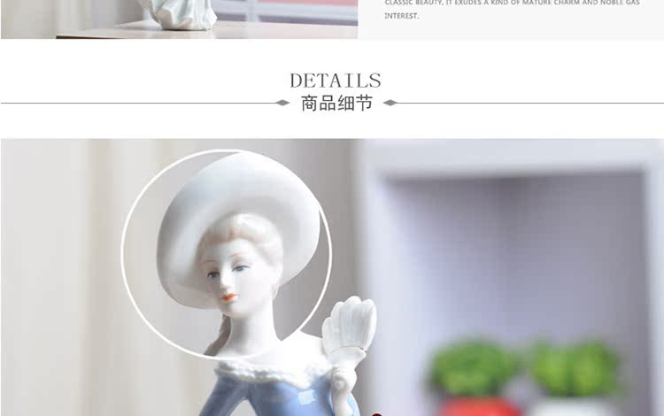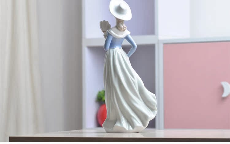 現代陶瓷工藝品 時尚家居飾品擺設 歐式西洋女 裝飾擺件 扇子美女1入