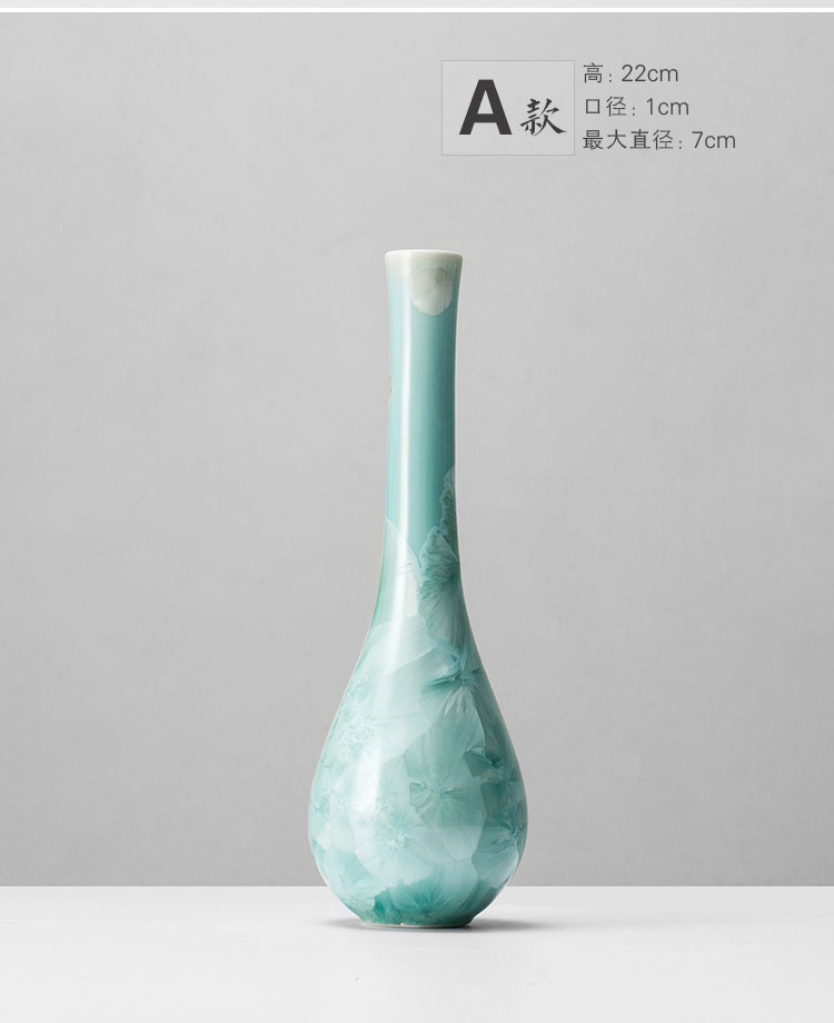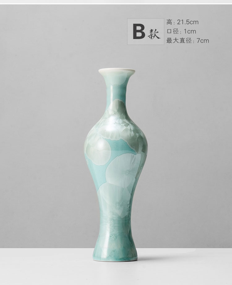 中式創意結晶釉陶瓷花瓶擺件手工花器客廳玄關茶臺工藝品1入