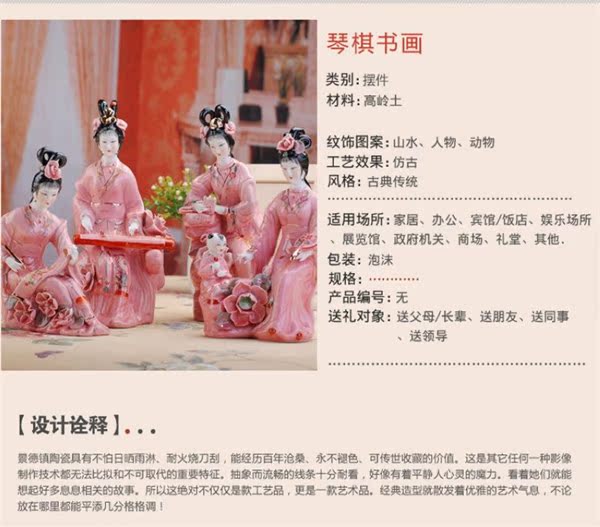 規格10寸:(琴):高約25厘米/ 寬約11厘米 /厚約12厘米 (畫):高約18厘米/ 寬約12厘米/ 厚約10厘米 (書):高約24厘米/ 寬約11厘米/ 厚約12厘米 (棋):高約21厘米/寬約11厘米 /厚約12厘米 --------------------------------------------------------------------------- 規格12寸:(琴):高約28厘米/ 寬約14厘米 /厚約12厘米 (畫):高約21厘米/ 寬約15厘米/ 厚約18厘米 (書):高約27厘米/ 寬約14厘米/ 厚約12厘米 (棋):高約24厘米/寬約12厘米 /厚約12厘米