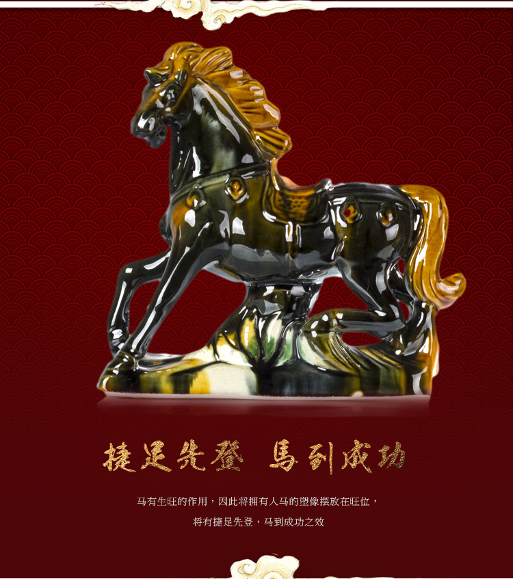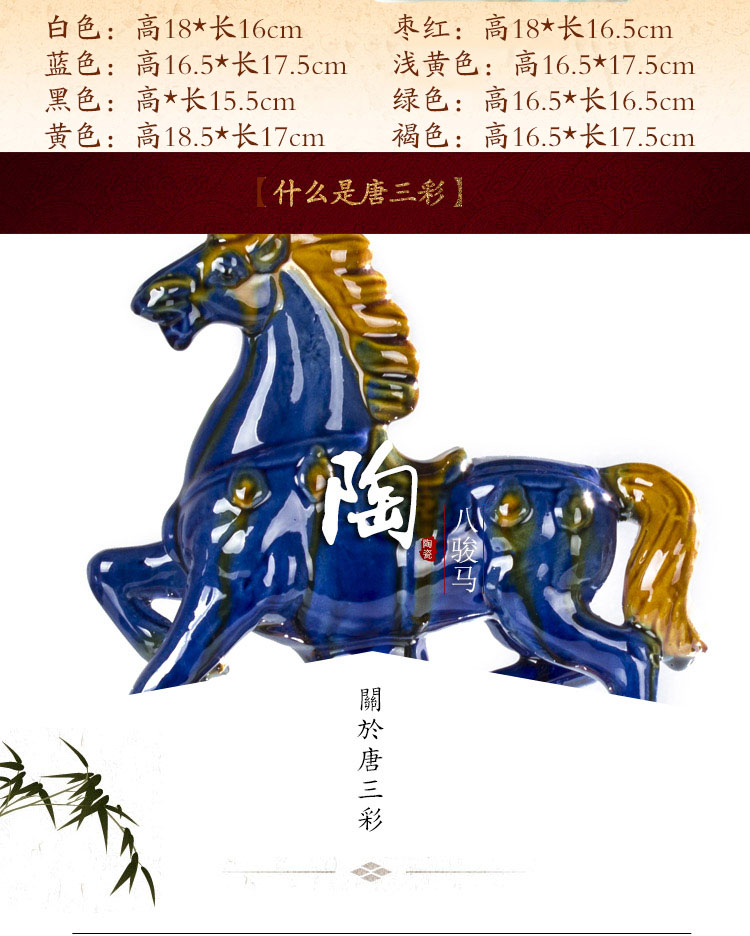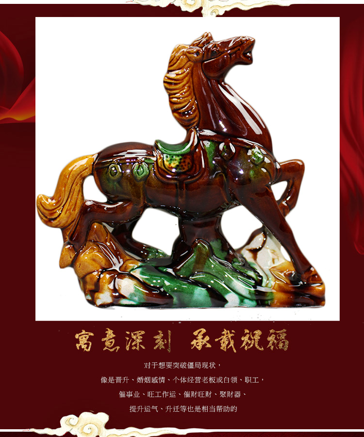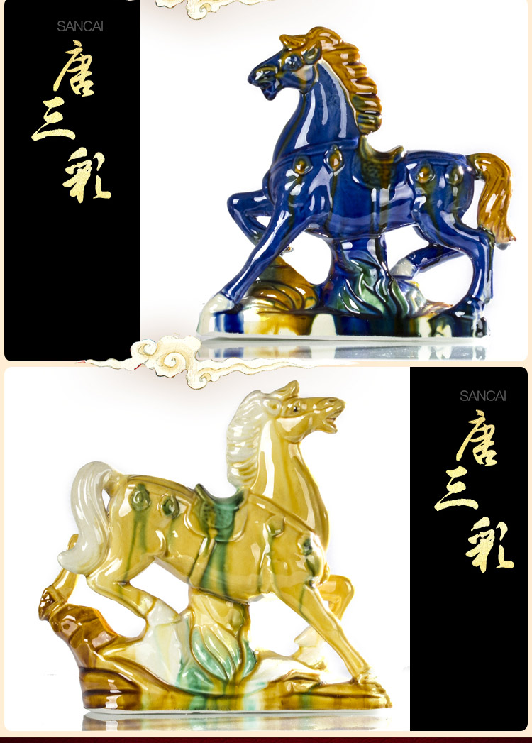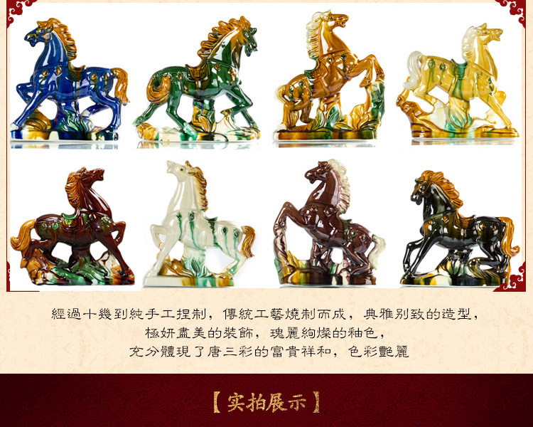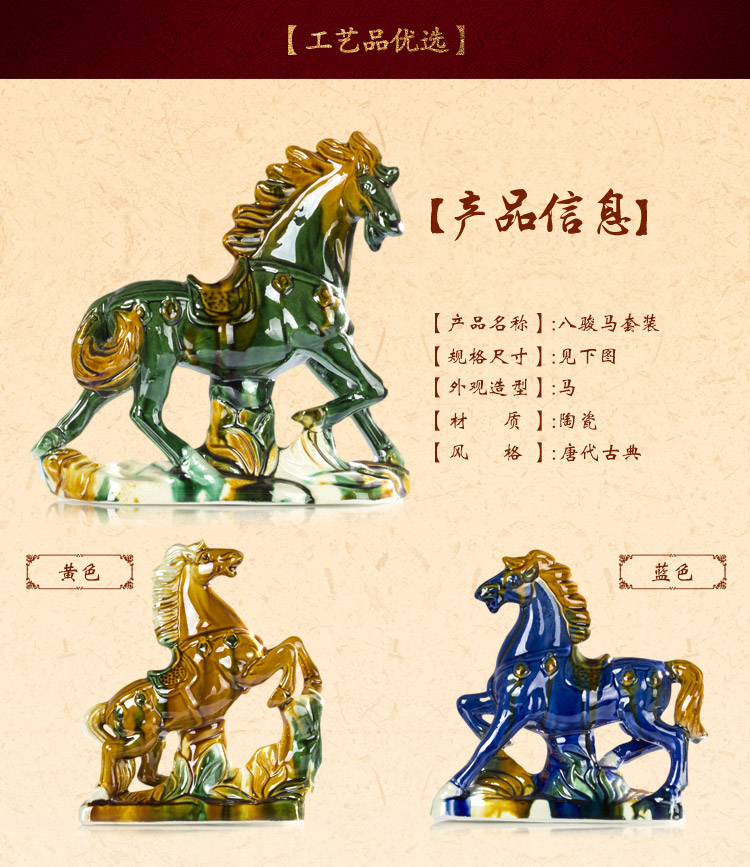 唐三彩馬 陶瓷馬工藝品八駿馬禮品 家居裝飾品擺件藝術品風水旺財1入