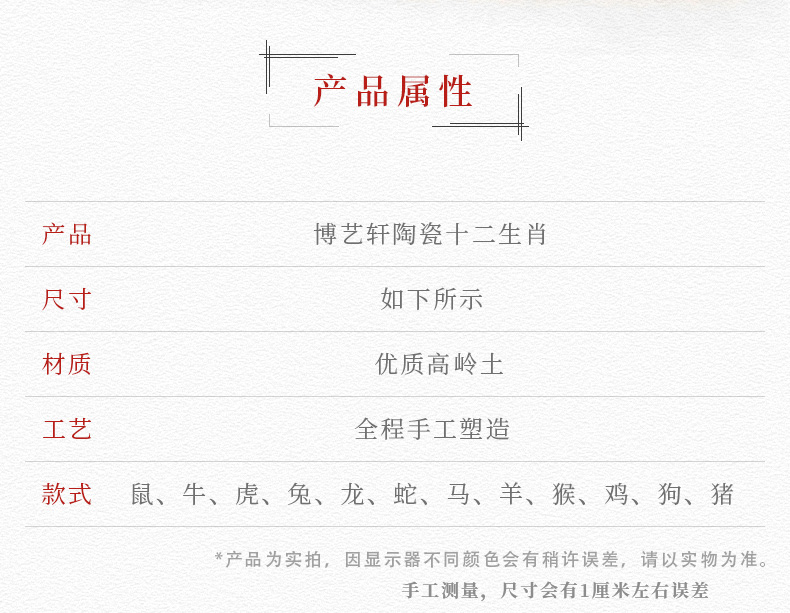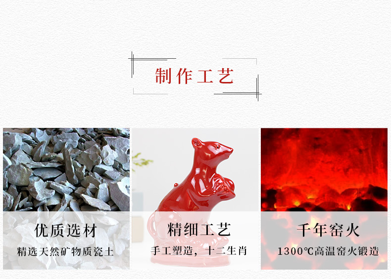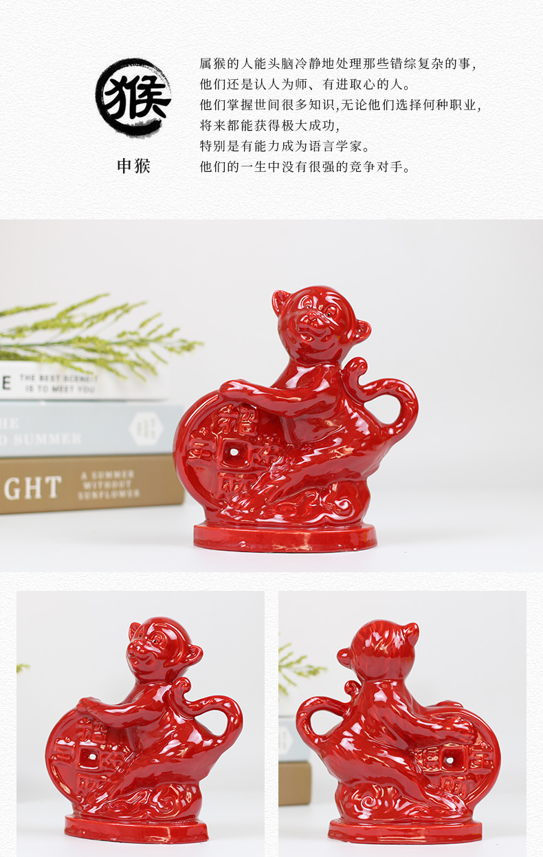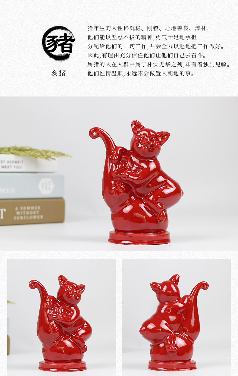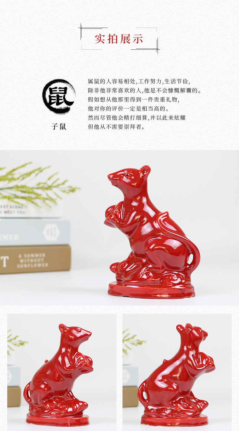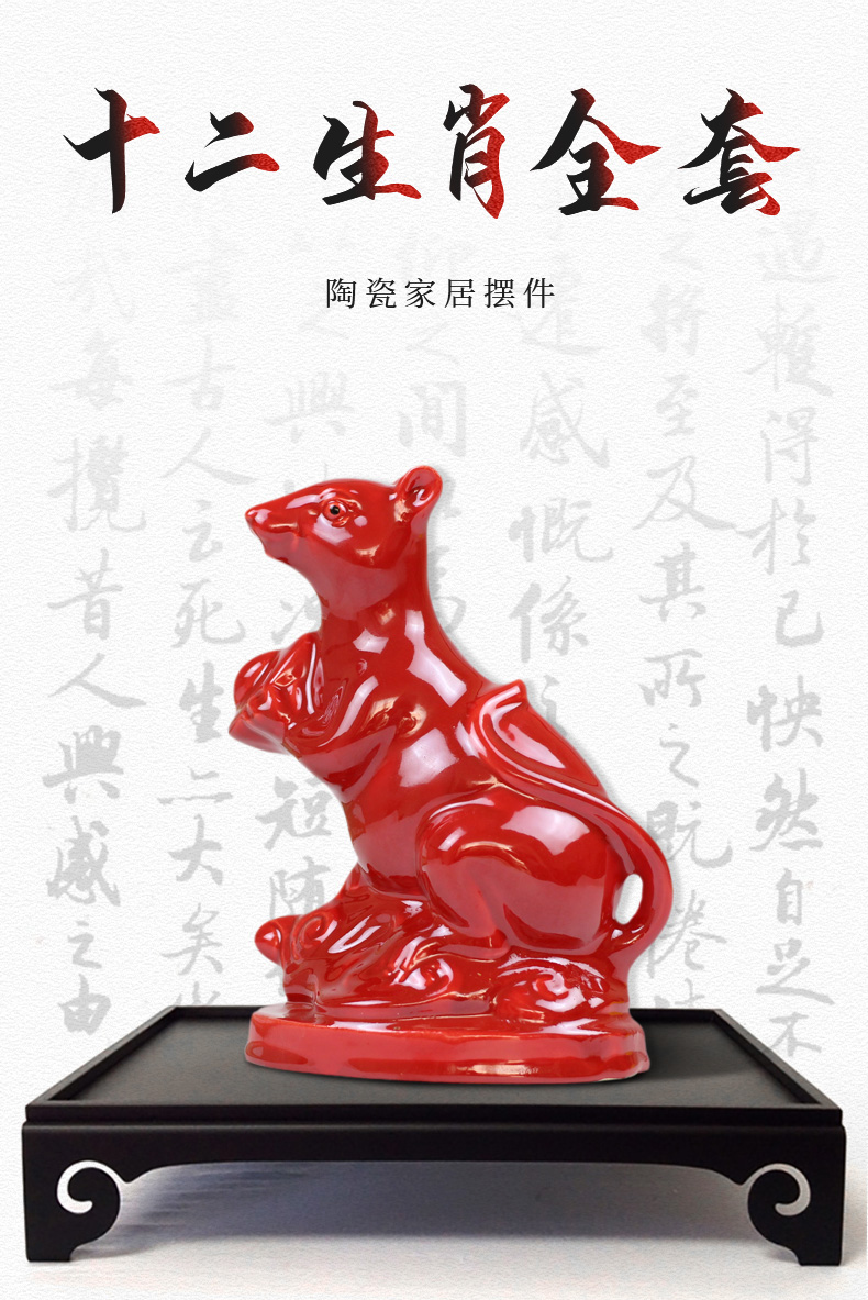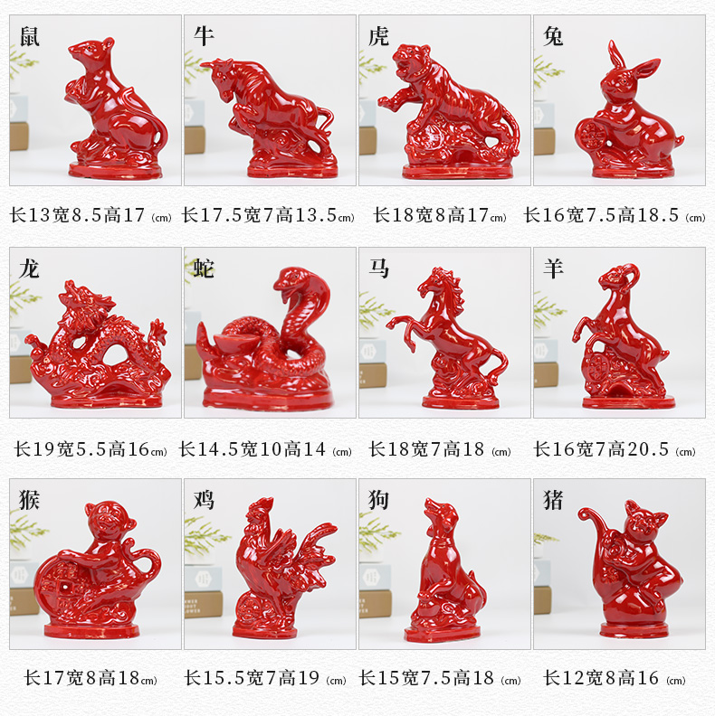 陶瓷十二生肖鼠牛虎兔龍蛇馬羊猴狗雞豬工藝品擺件家居裝飾品招財1入