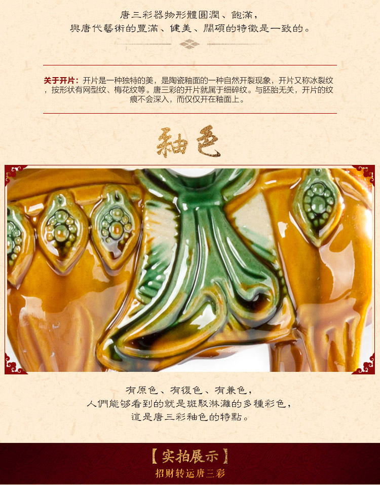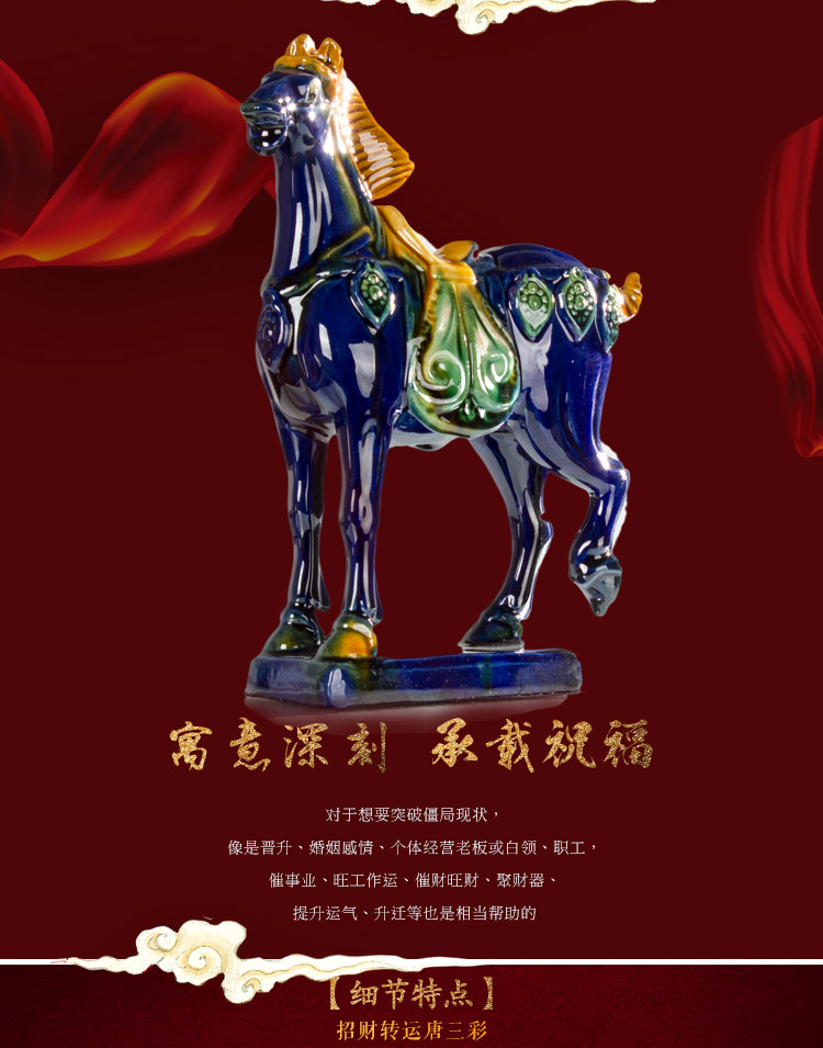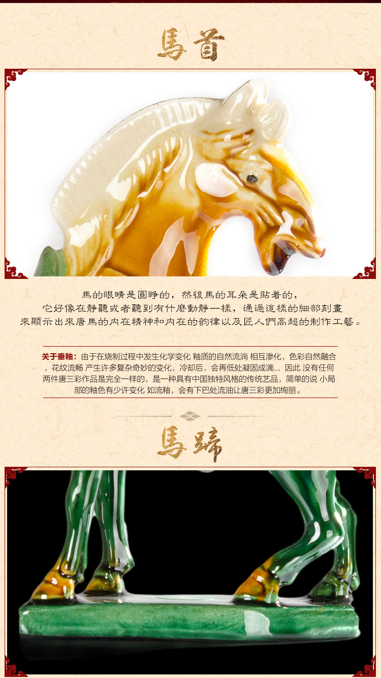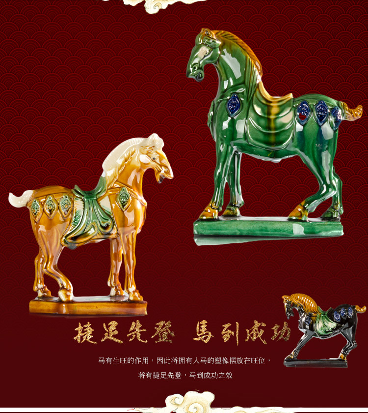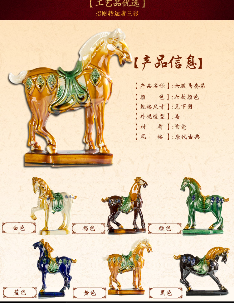唐三彩馬 六駿馬 陶瓷家居擺件 裝飾品工藝品禮品 馬擺件1入
