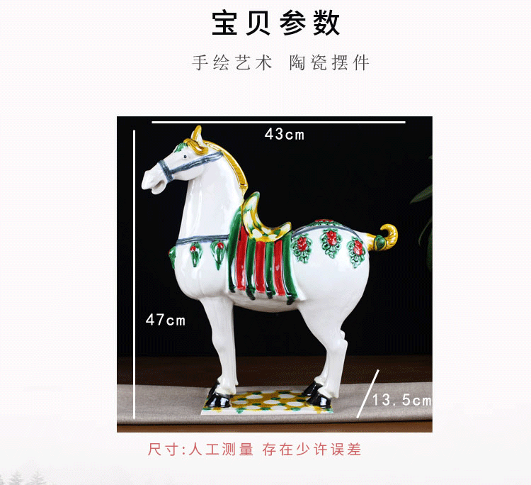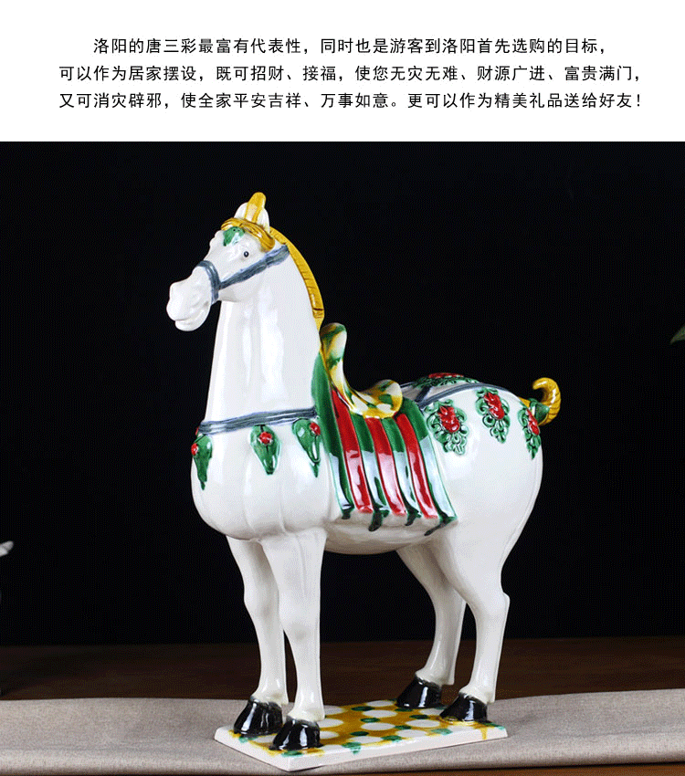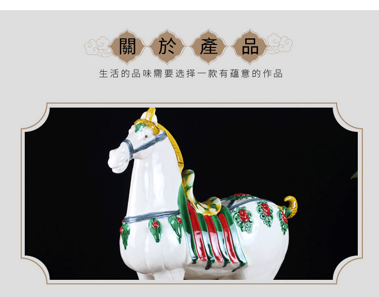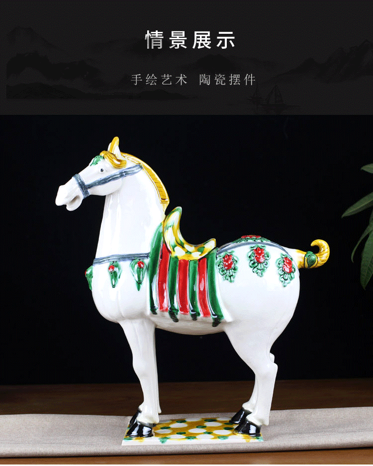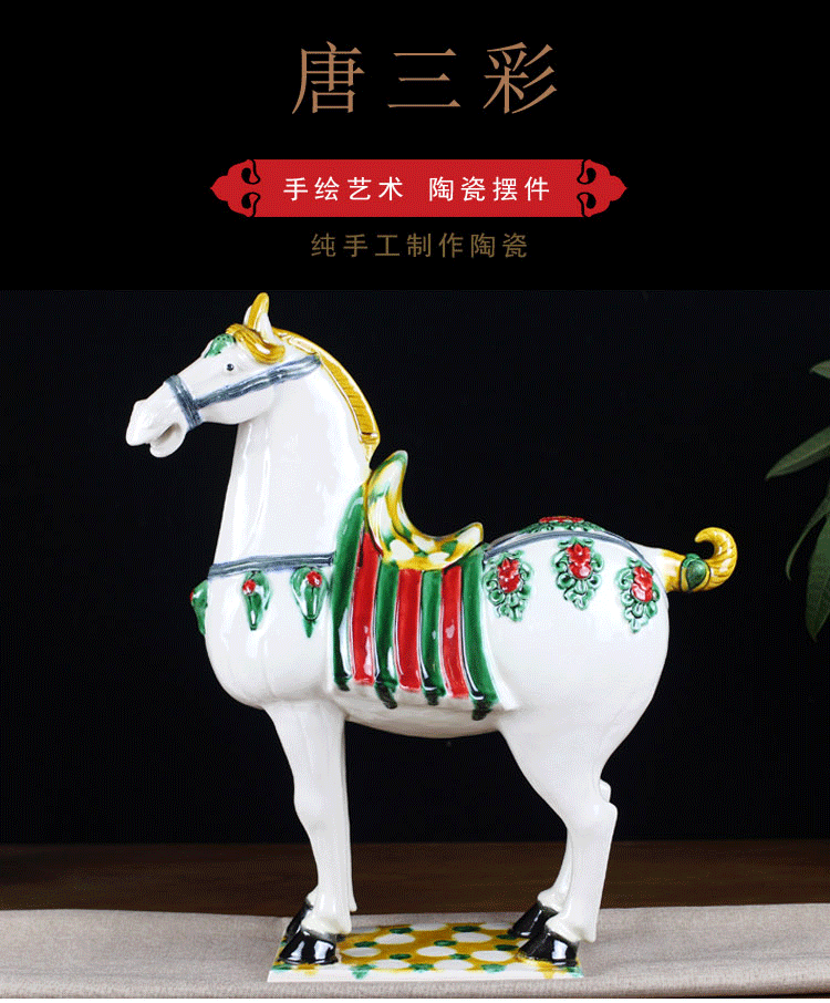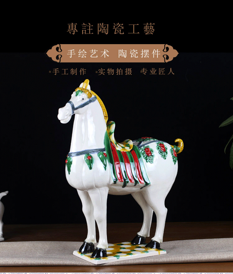 唐三彩大馬陶瓷馬擺件家居裝飾品客廳隔斷白馬擺設工藝品商務禮品1入