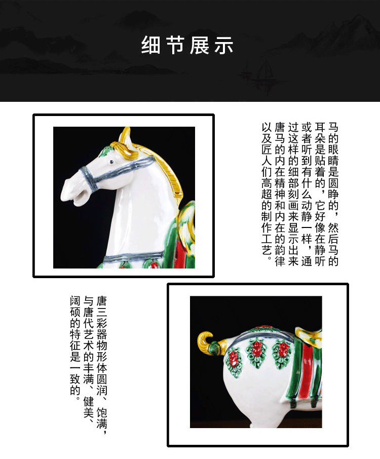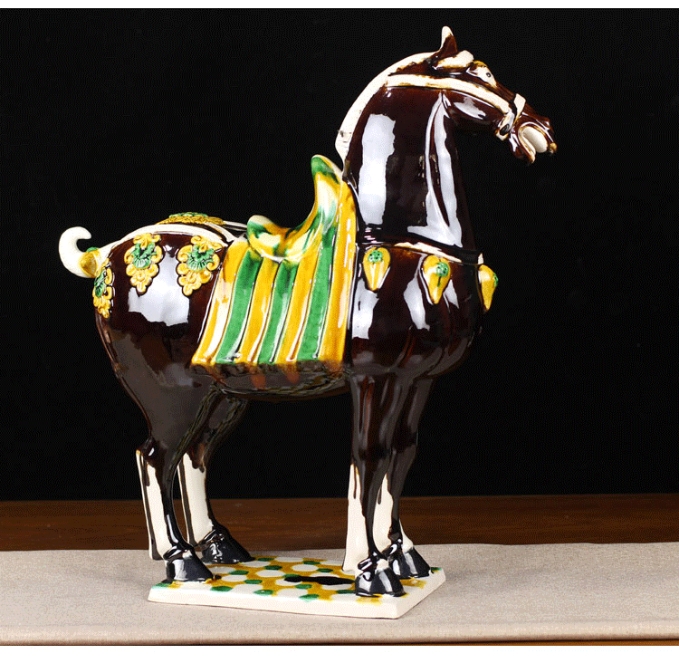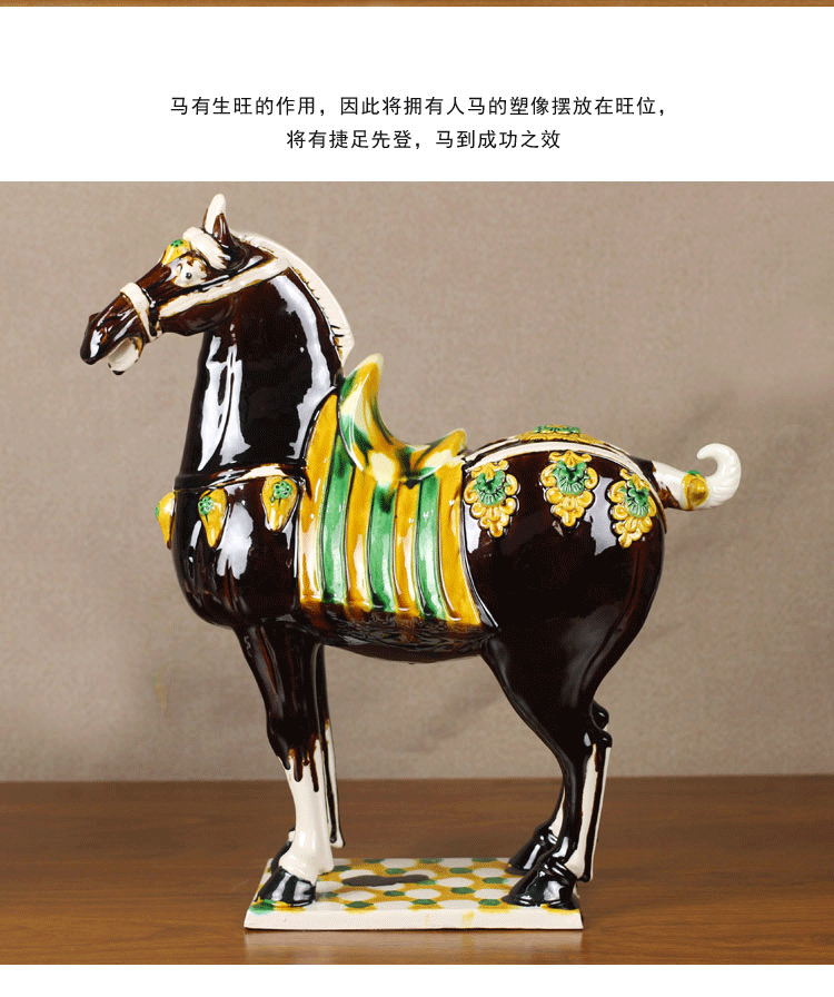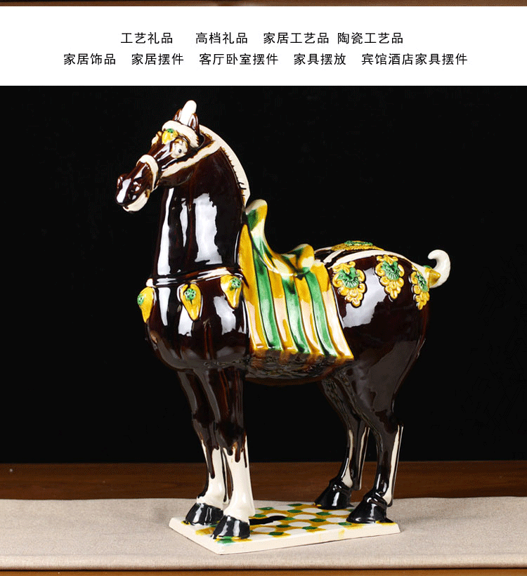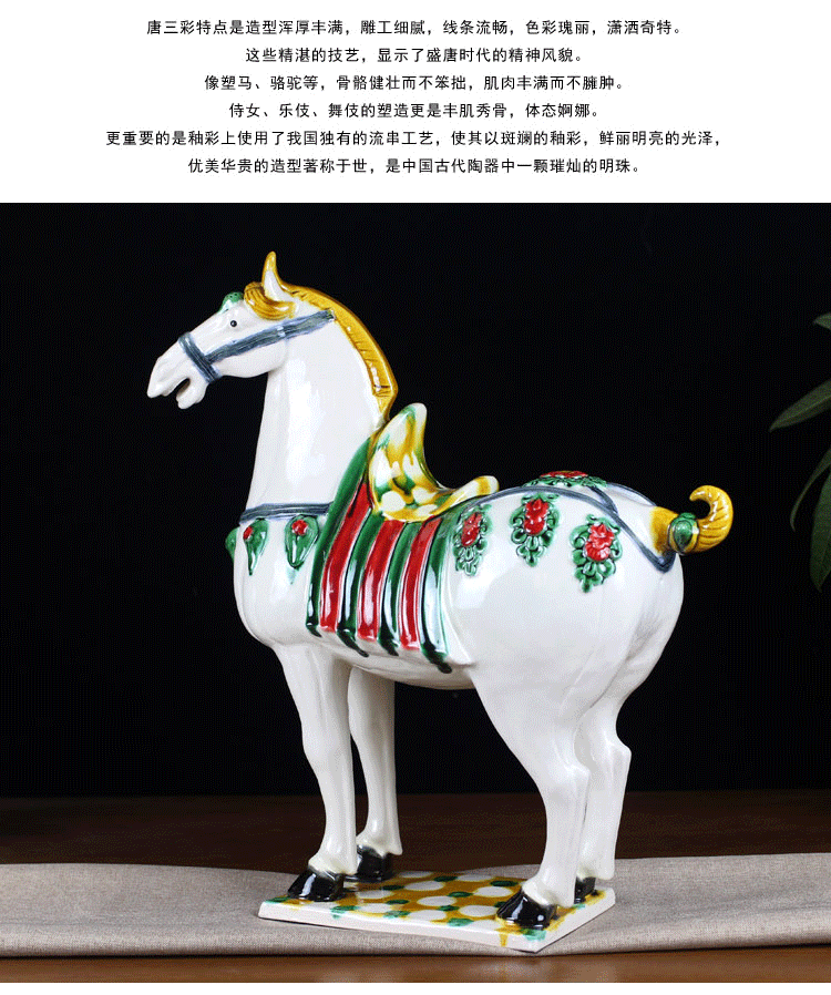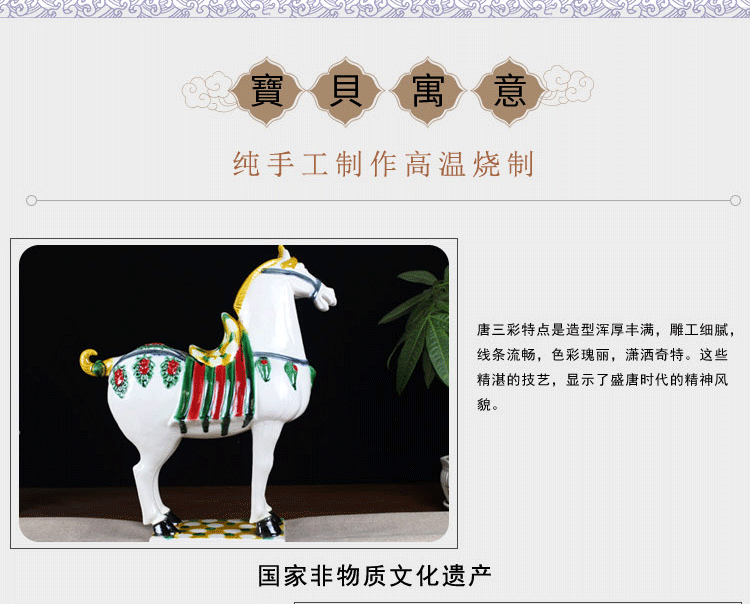 唐三彩大馬陶瓷馬擺件家居裝飾品客廳隔斷白馬擺設工藝品商務禮品1入