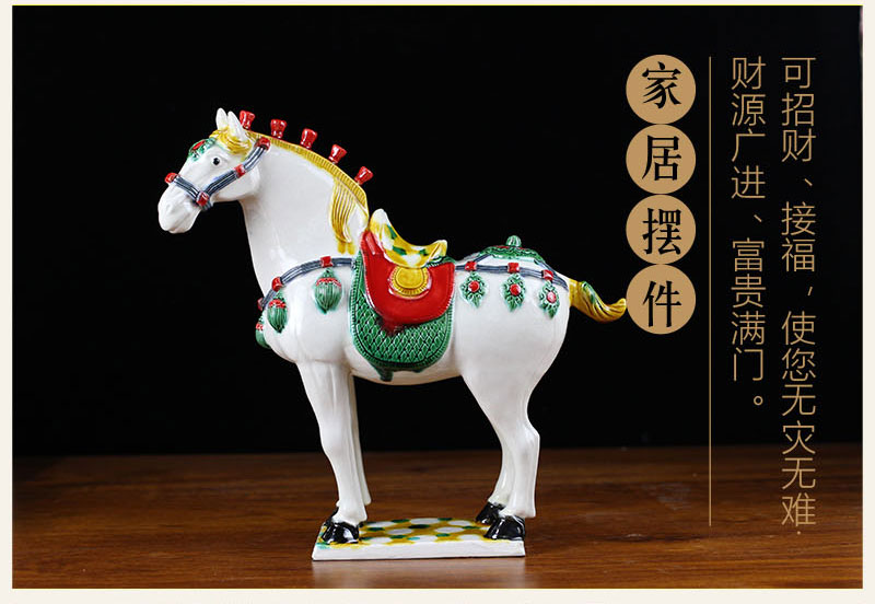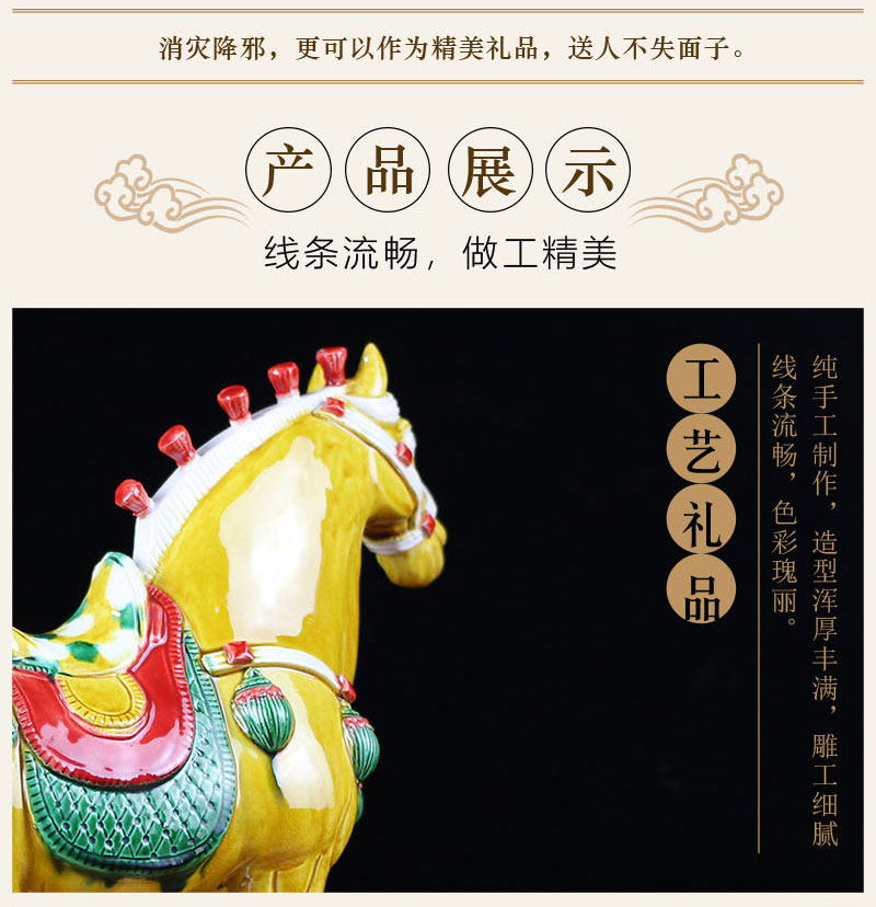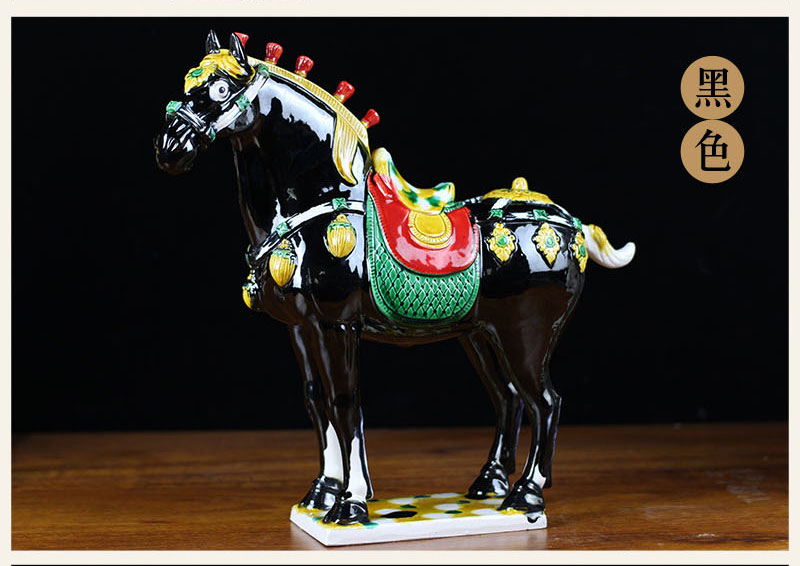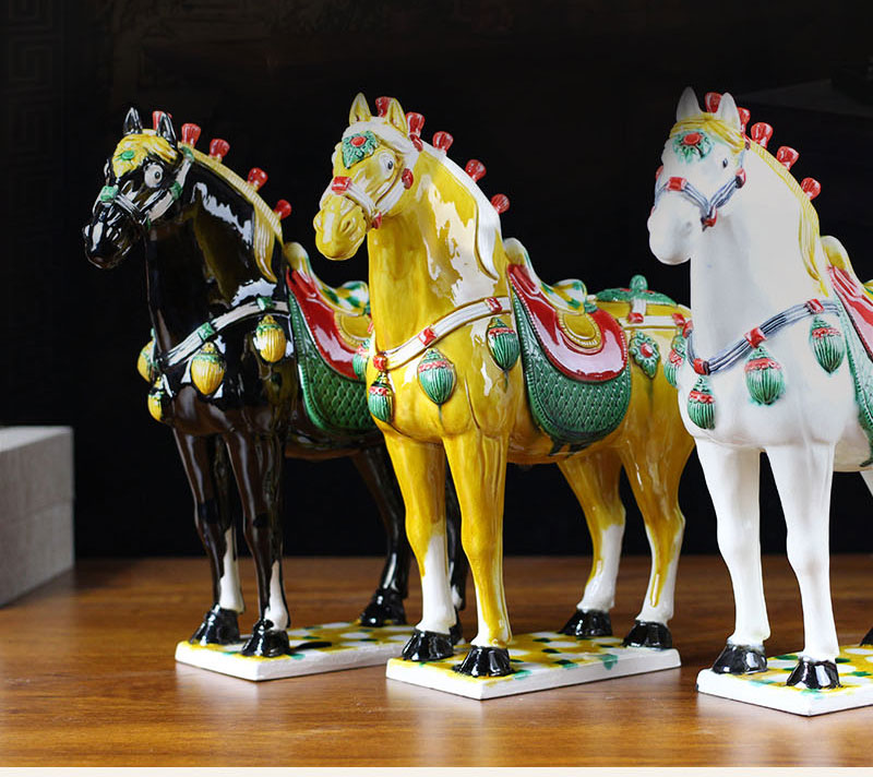唐三彩皇室五花馬家居客廳裝飾馬擺件陶瓷工藝品風水招財商務禮品1入