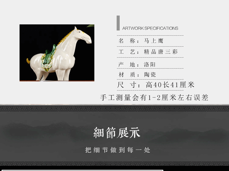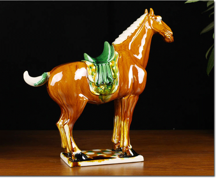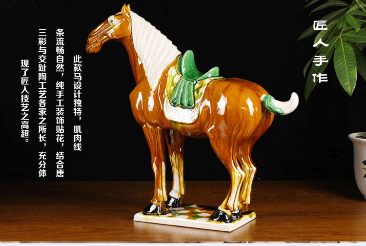 唐三彩馬陶瓷馬擺件風水招財馬上贏辦公擺設商務禮品家居裝飾品1入
