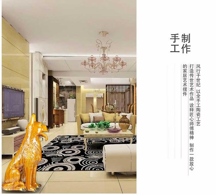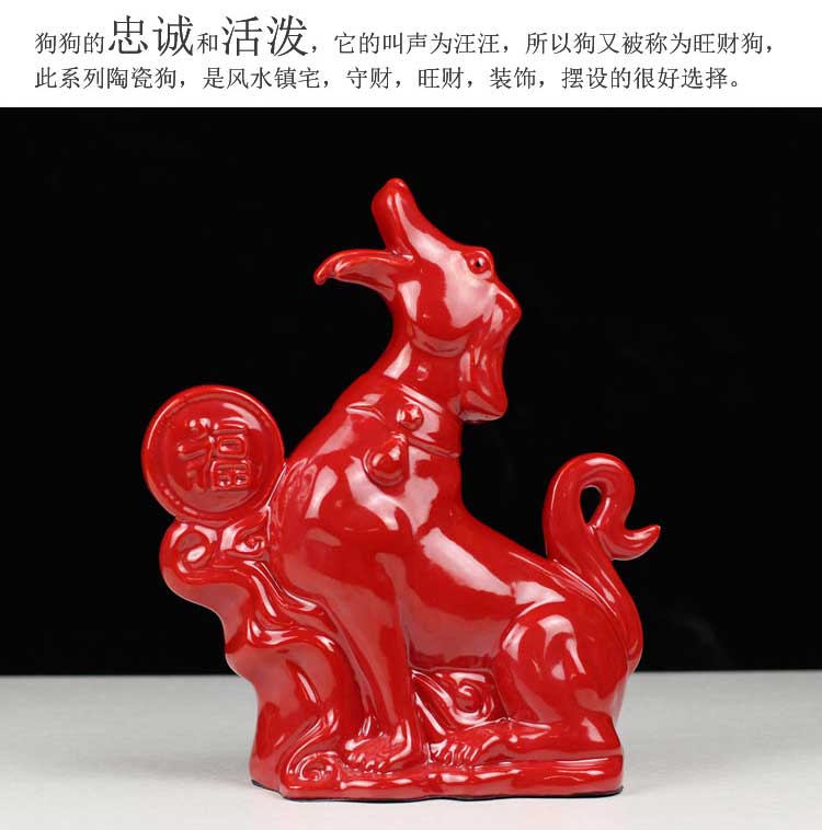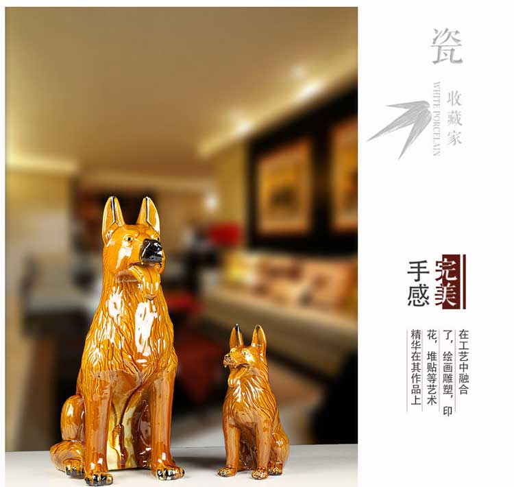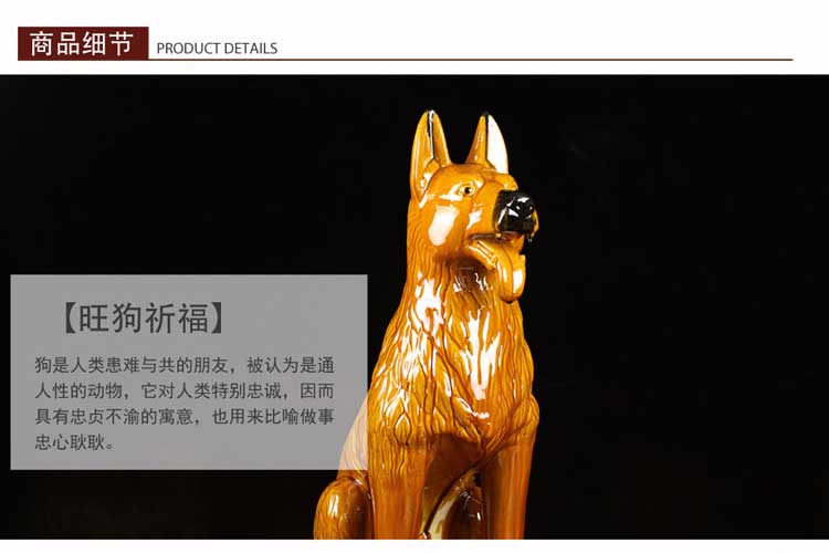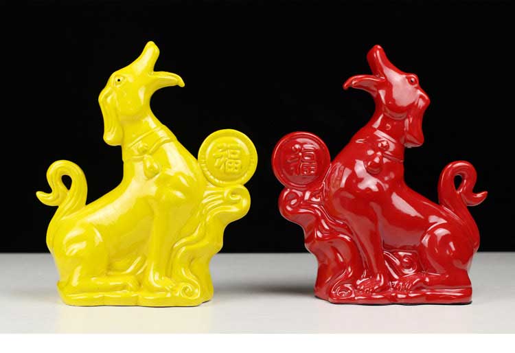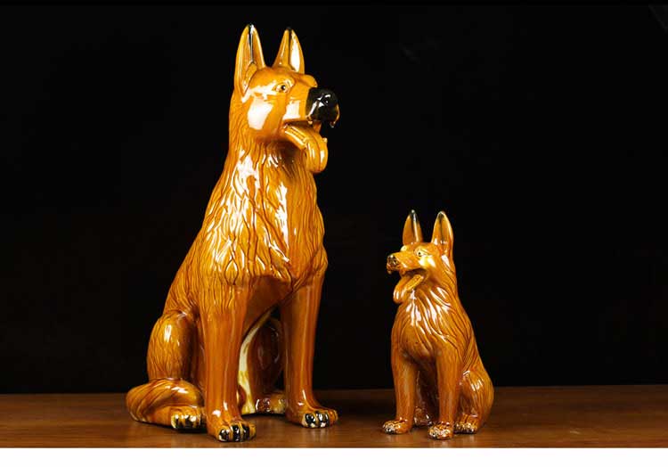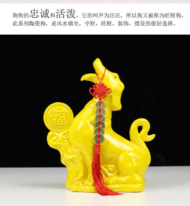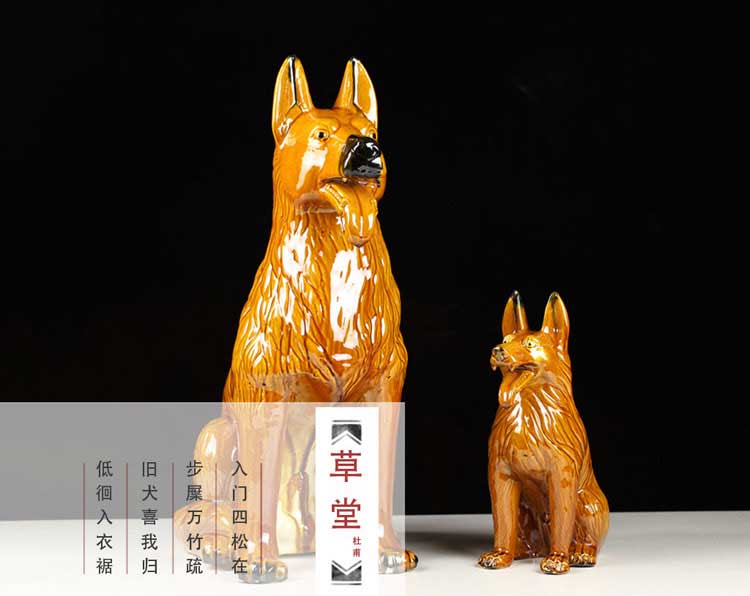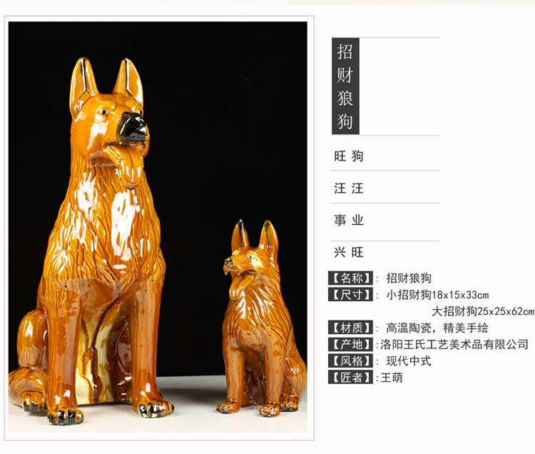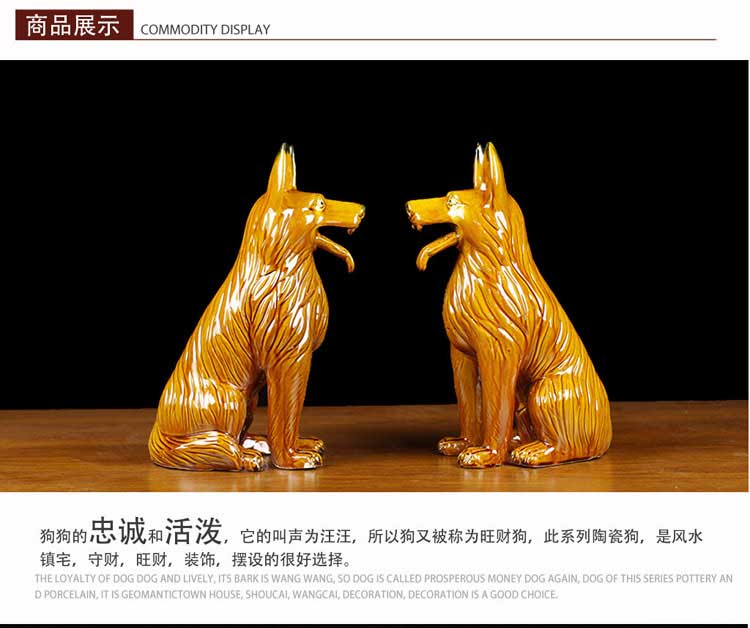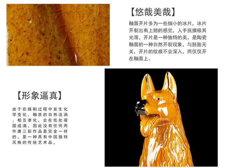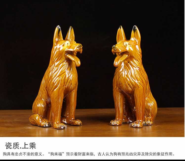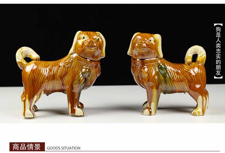 唐三彩狼狗陶瓷狗擺件風水招財旺財守財生肖狗工藝品狗家居裝飾品1入
