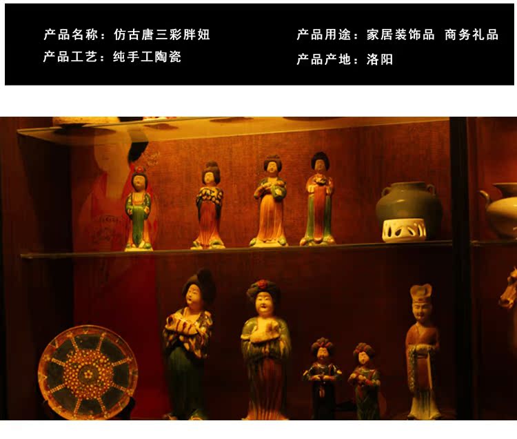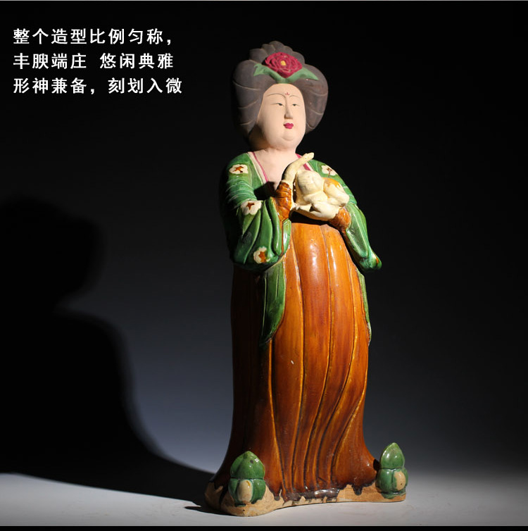 唐三彩仕女胖妞擺件電視柜博古架陶瓷藝術品復古胖美女家居裝飾品1入