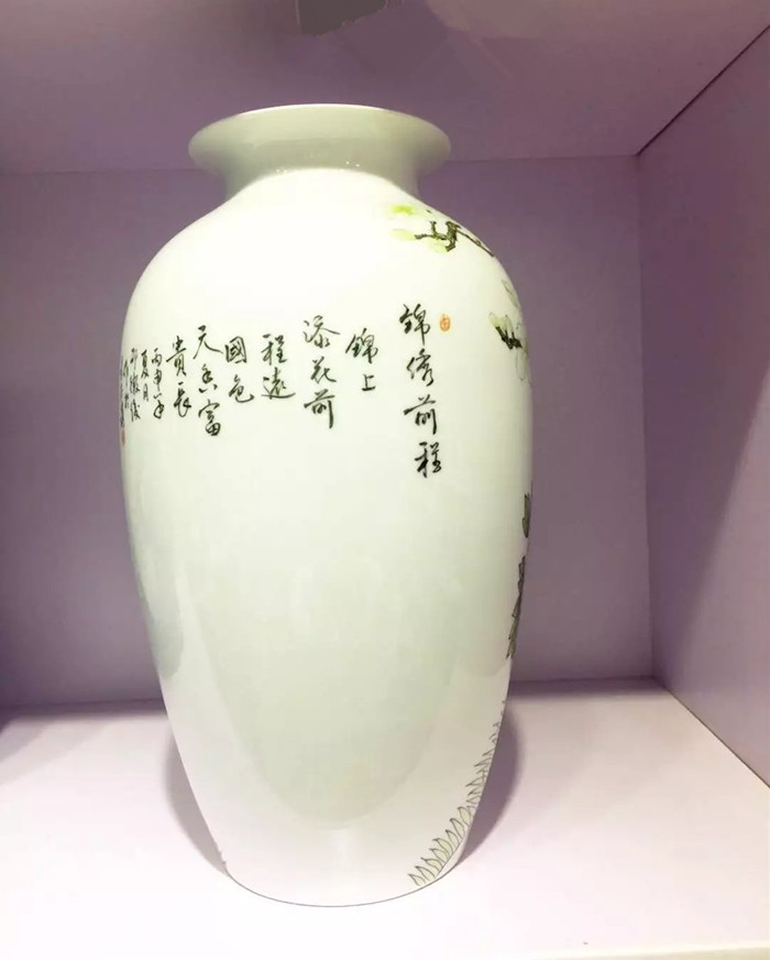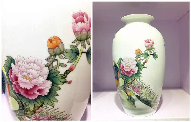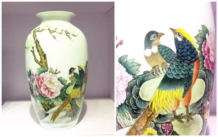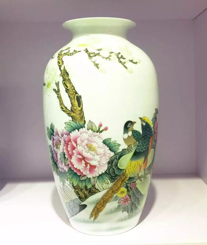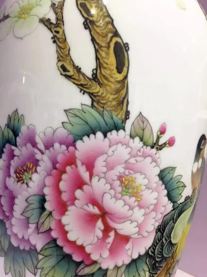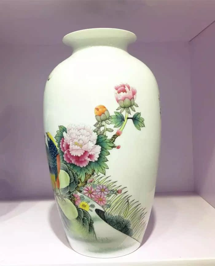 陶瓷花瓶擺件手繪粉彩花鳥高檔大師花瓶錦繡前程裝飾工藝品1入